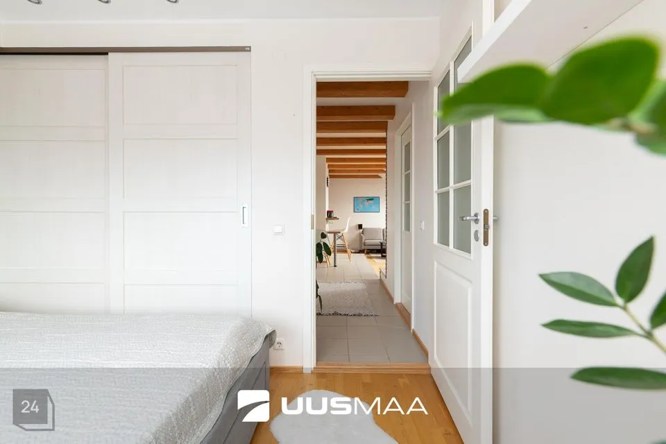 Korter on hea funktsionaalse planeeringuga ning kindlasti eristub teistest pakkumistest. Ruumika elutoa südameks on kamin, köök on poolavatud, magamistoad praktilise suurusega.