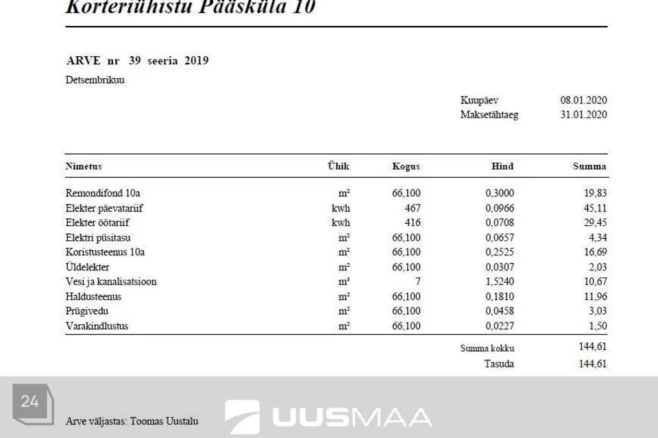 Detsember 2019 - 144,61 eurot koos kogu tarbimisega.