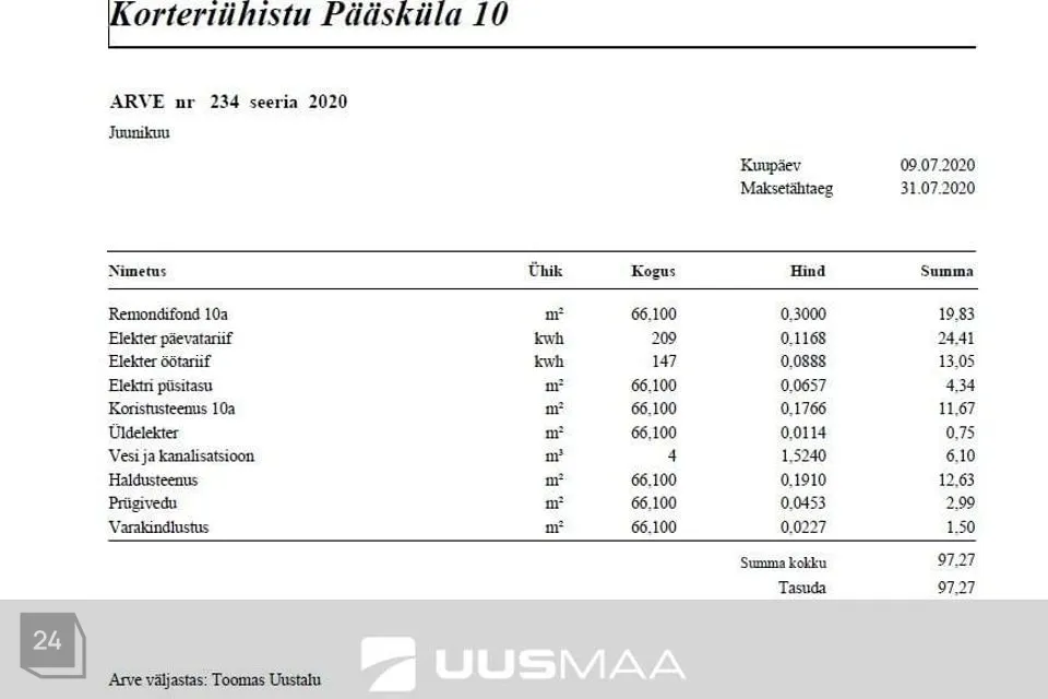 Juuni 2020 - 97,27 eurot koos kogu tarbimisega.