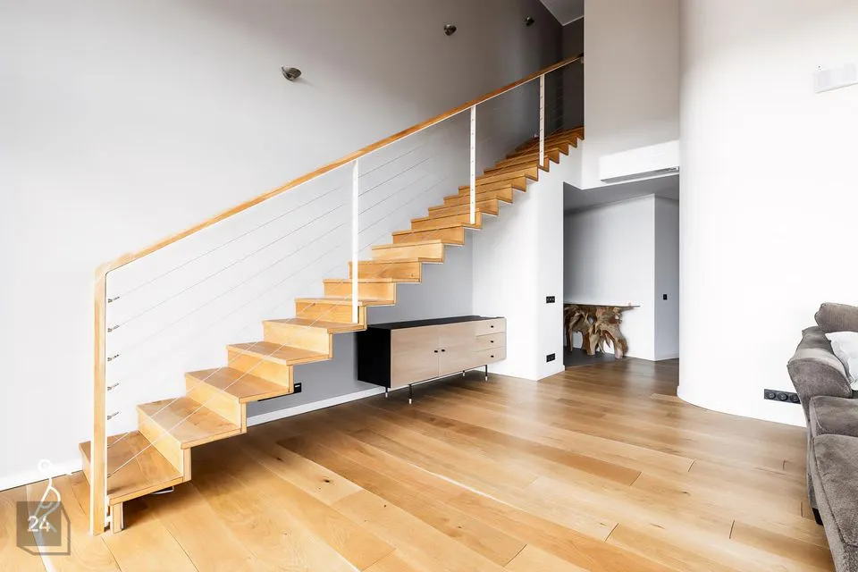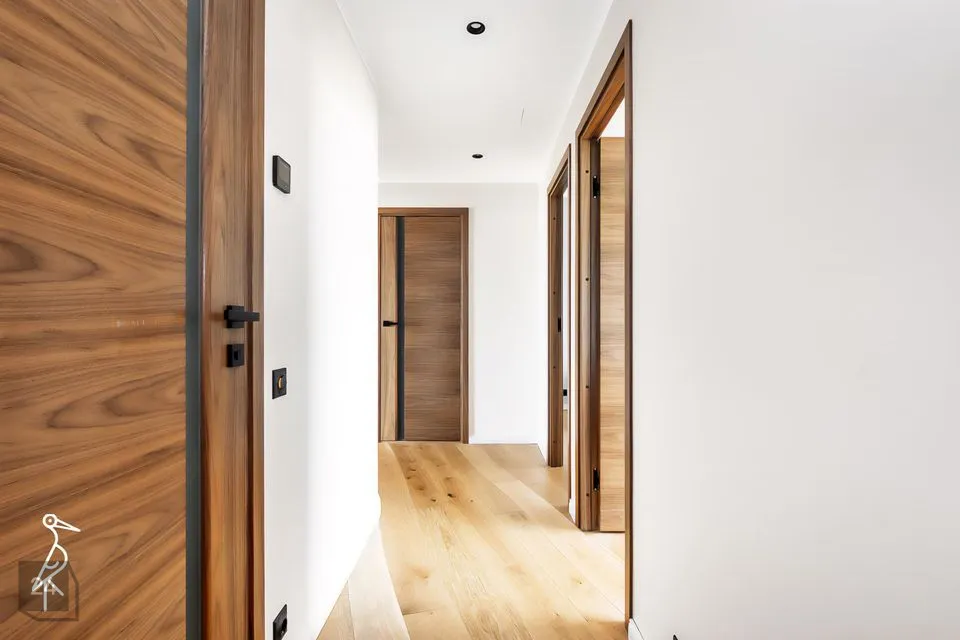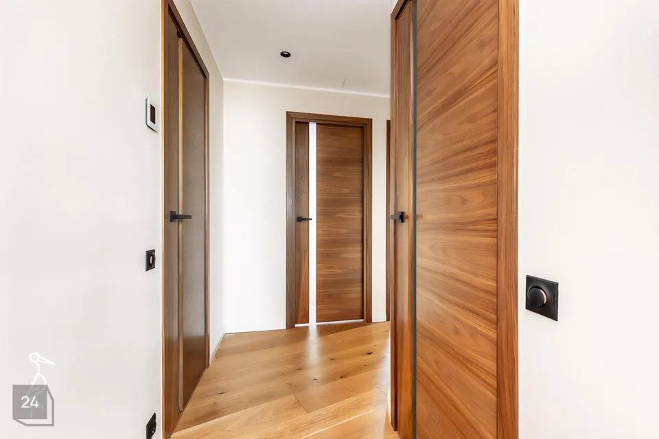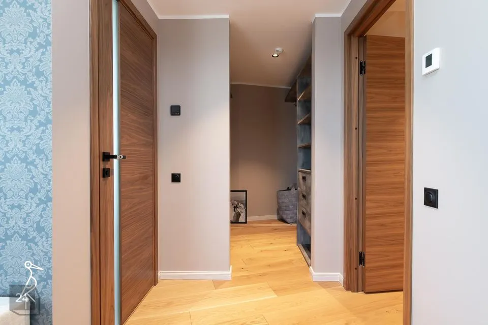 Põrandatel on naturaalne tammeparkett. Vannitubade seinad ning põrandad on kaetud keraamilise plaadiga. Korteri välisuks on spoonitud ning akendeks on kolmekordse klaaspaketiga Saksa tüüpi puitaknad.