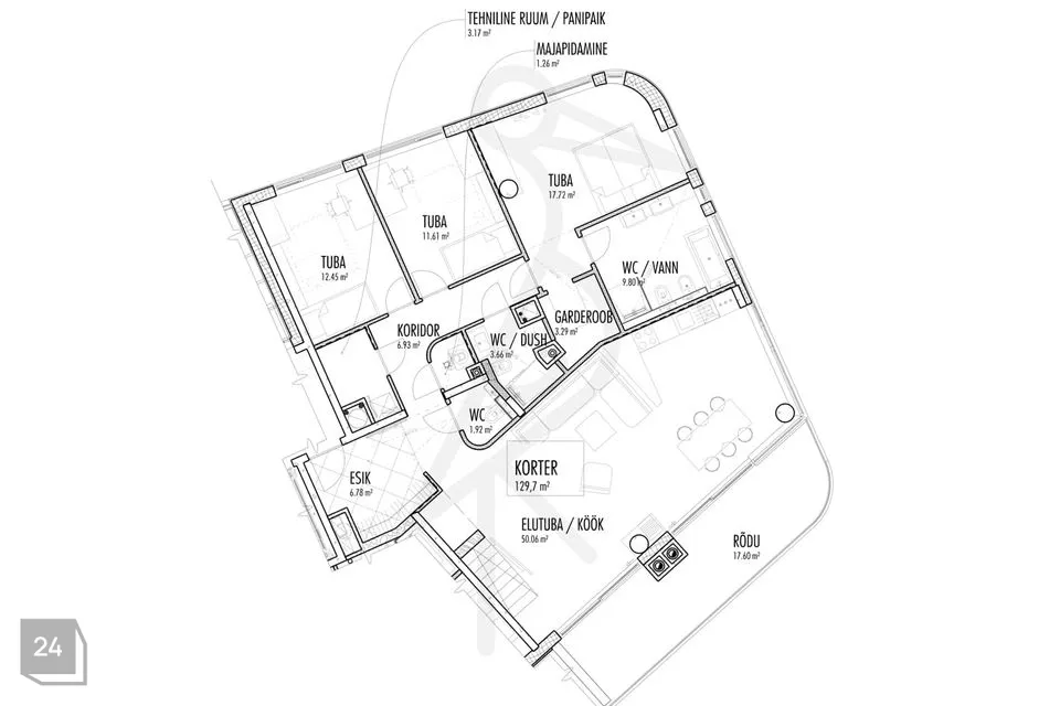 Korteris on kasutatud eritellimusmööblit ning mainekaid kodusisustusbrände.