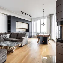 Korteris on põhjamaisesse koju ideaalselt sobiv elava tulega hubasust loov kamin, mis on asendamatu külmadel sügis- või talveõhtutel.