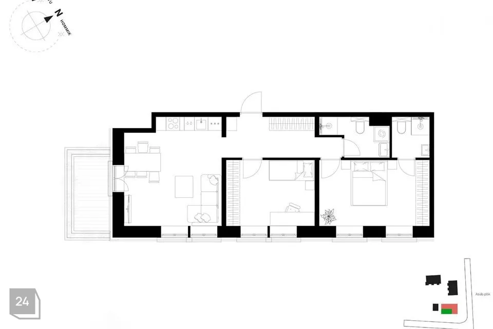 Selle 3-toalise 1. korrusel asuva lõunapoolse terrassiga kodu aknad avanevad hommiku- ja lõunapäikese poole. Siin on avar esik, kuhu mugavalt paigutada välisriided ja -jalatsid, ning nurgapealne köök-elutuba pääsuga terrassile. Kaks duširuumi – peamisel magamistoal oma privaatne – teevad selle väga mõistliku suurusega kodu lausa luksuslikuks.