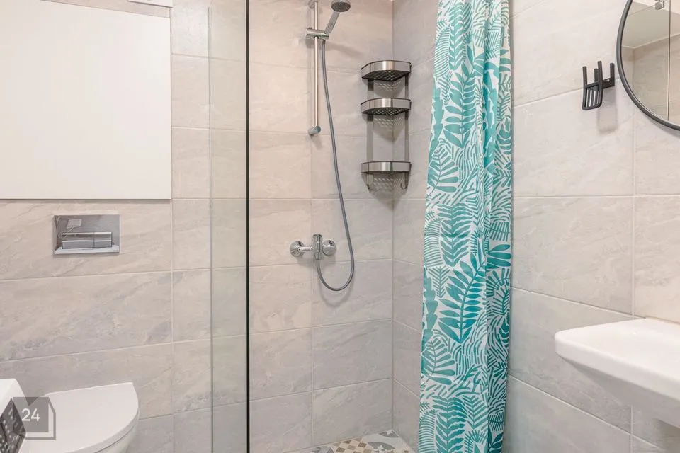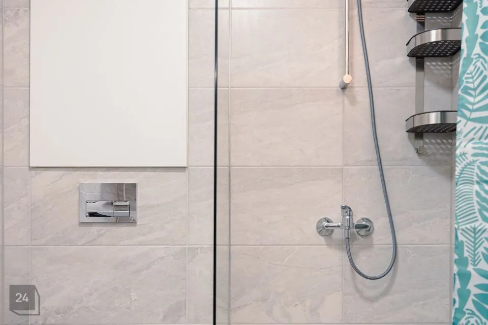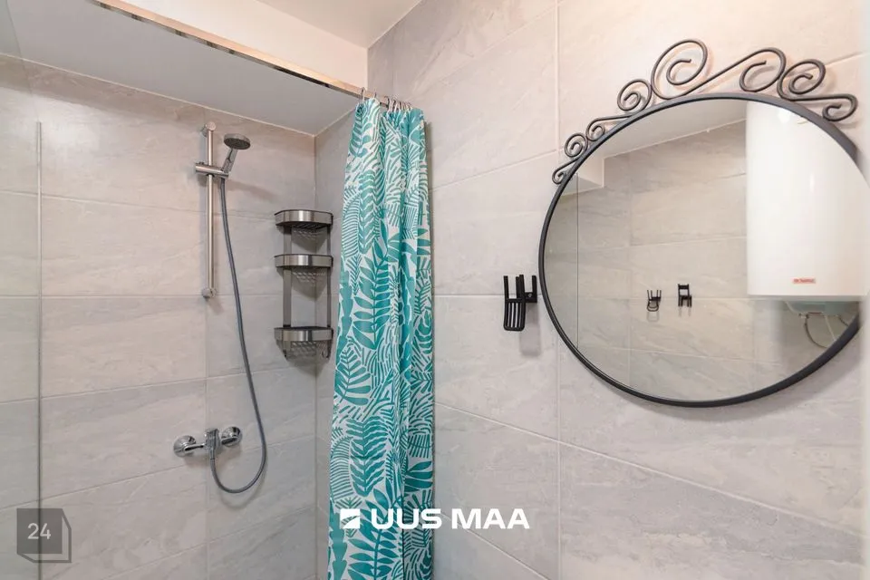 Vannituba: Võrdselt stiilne ja funktsionaalne, kuhu on paigaldatud wc, kraanikauss, dušinurk ning pesumasin. Soe vesi tuleb elektriboilerist.