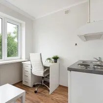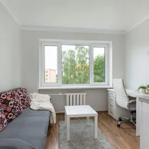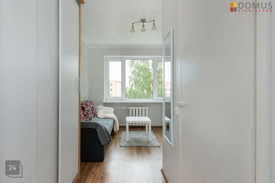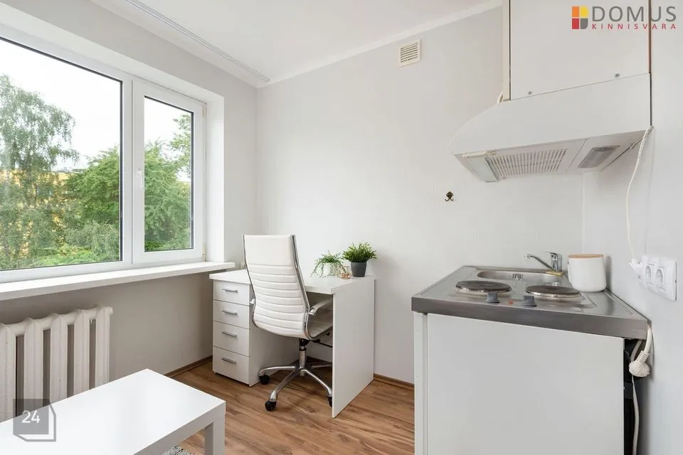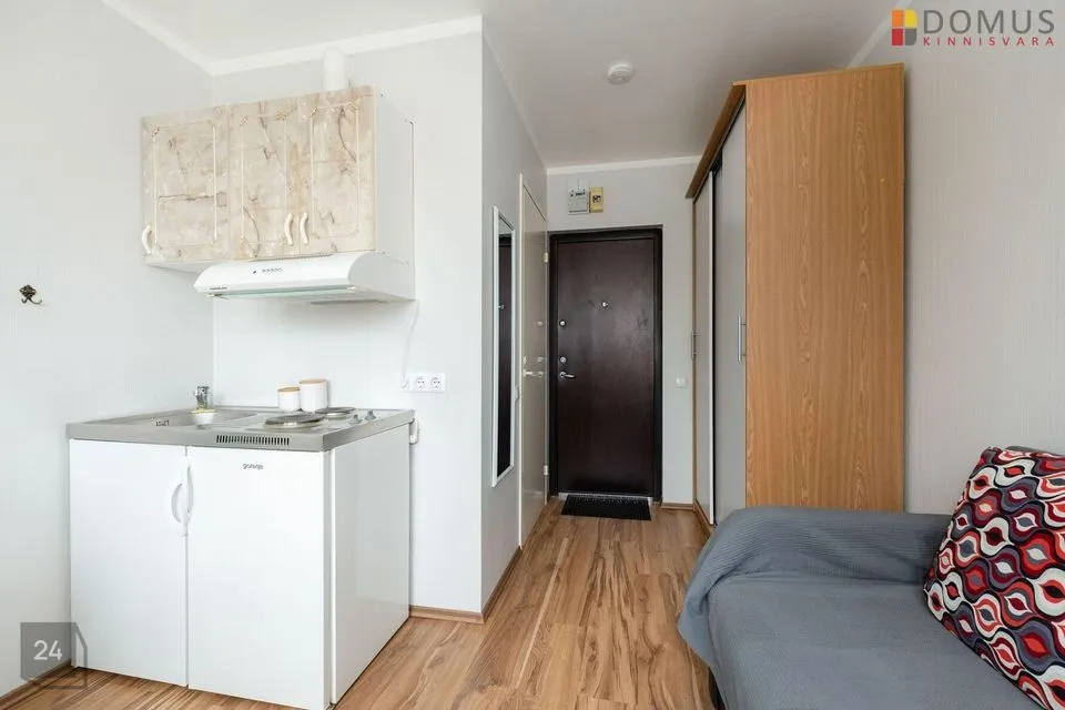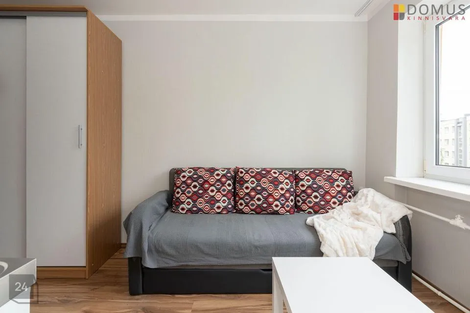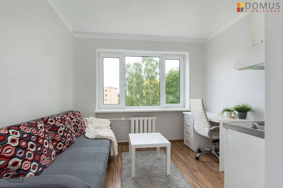Korter on hästi hoitud, puhas ning korras. Heledad siseviimistlustoonid teevad eluruumi avaraks ja valgeks. Uuele elanikule jääb kogu korteris olev mööbel- kirjutuslaud, tool, lahtikäiv diivan, riidekapp. Kompaktselt on ära mahutatud tilluke köögimööbel koos elektripliidi, külmkapi ja kraanikausiga. Korteris olemas ka wc ja duširuum.