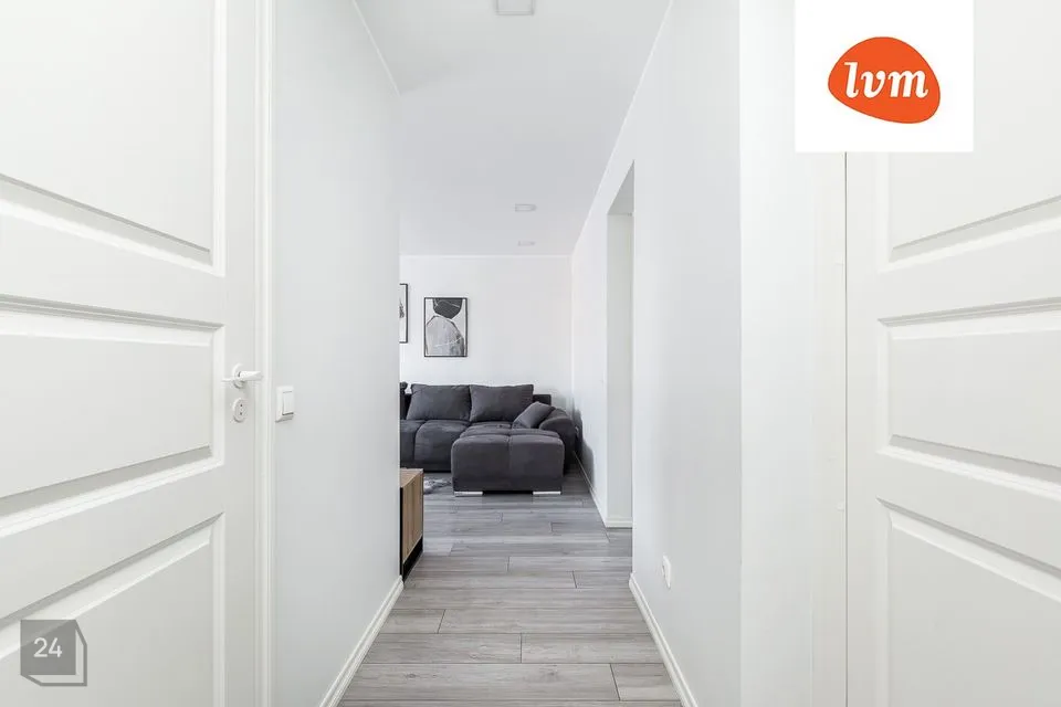 esik,wc/pesuruum; avatud köök-elutuba; põhimagamistuba, rõdu ning veel üks magamistuba.