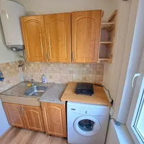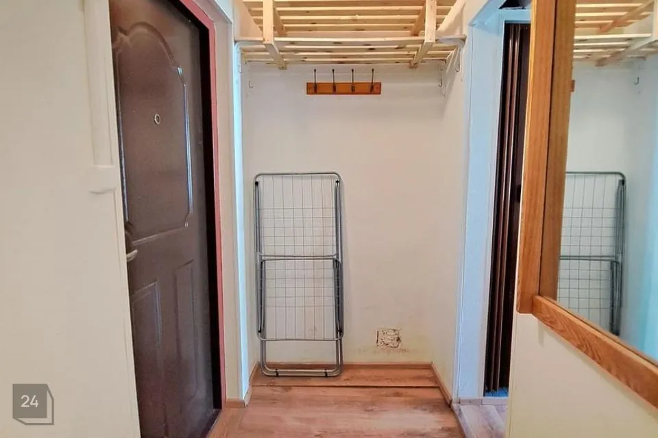 Квартира состоит из большой комнаты, кухни, душевой с туалетом и прихожей. Общая площадь 28 м2.