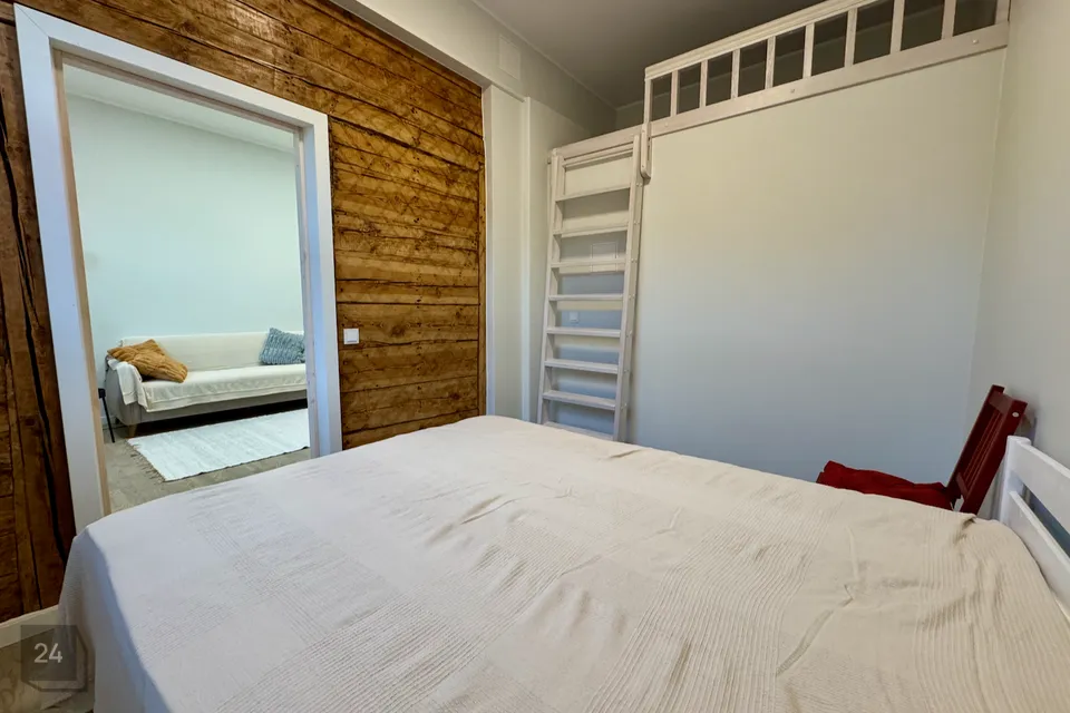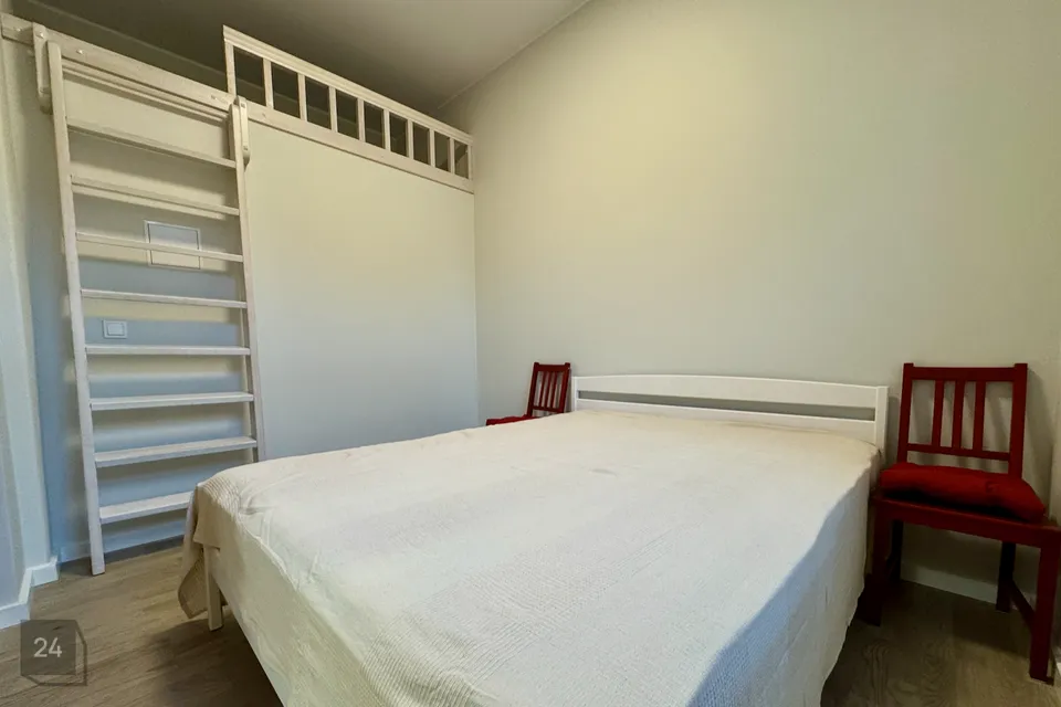 Elutoas on mugav diivan, magamistoas lai voodi (160 cm) ning redel, mis viib väikesele magamisalale, mida saab kasutada ka panipaigana. Köök on täielikult varustatud integreeritud tehnikaga: induktsioonpliit, ahi, õhupuhasti, nõudepesumasin, külmik, mikrolaineahi ja pesumasin. Pesuruumis on põrandaküte, automaatne ventilatsioon, walk-in dušinurk ja WC.