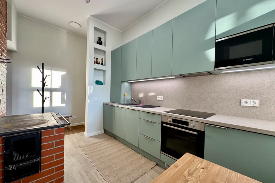 Korteri laed ulatuvad üle 3 meetri, tuues ruumi avarust, õhku ja valgust – see on detail, mis loob kohe sisenedes erilise ruumitunde.