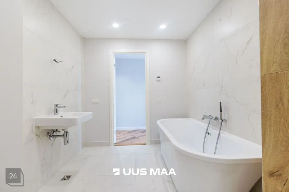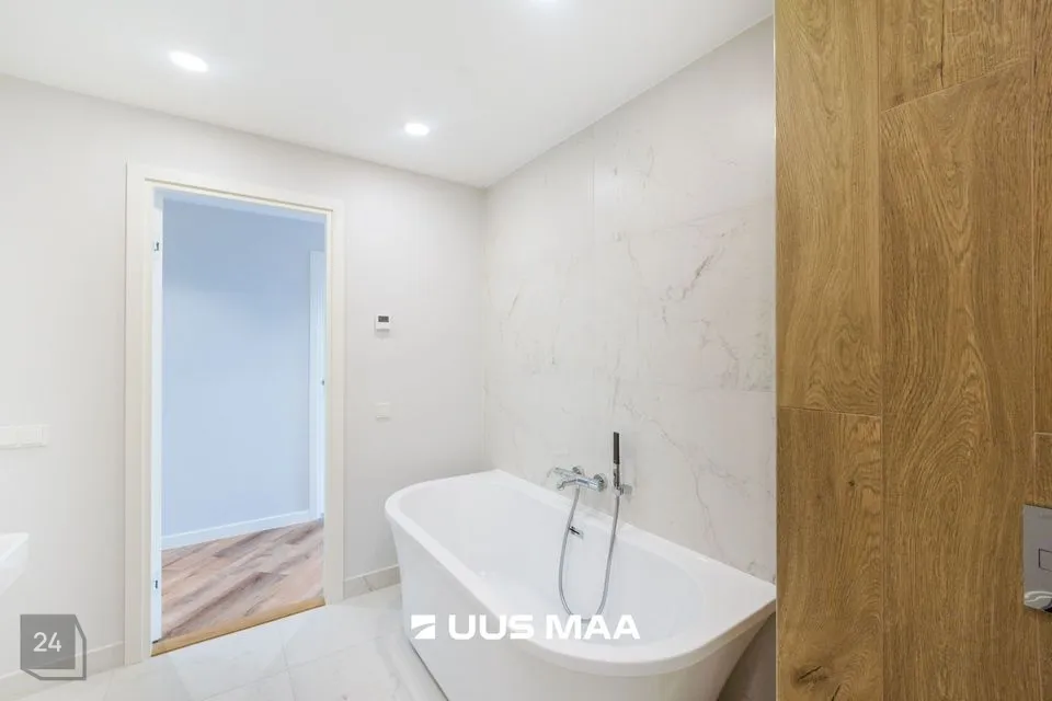 For rent: a luxurious and light-filled 4-room penthouse in the popular and green Tiskre area, where everything necessary for comfortable living is just a few minutes' drive away. Nearby are Prisma (2 km), Rimi (3.5 km), Harku beach area, hiking trails, and Tabasalu bog. Additionally, a new private gymnasium is under construction. The area offers excellent opportunities for families with children and people who value an active lifestyle.