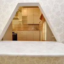 APARTMENT Facing the house, in the east arc direction, is a living room and kitchen with a balcony, with a large bedroom facing west. Bathroom and toilet are combined. The apartment has triple-glazed windows, a metal security door, laminate parquet flooring in the rooms, wooden flooring in the kitchen and corridor. The hallway floor is tiled.