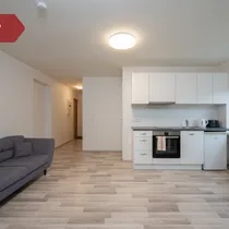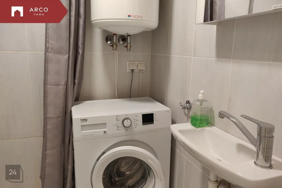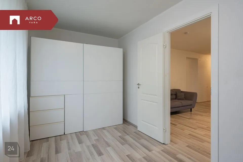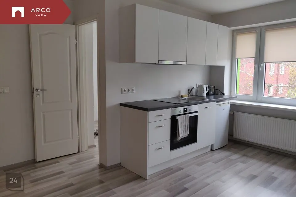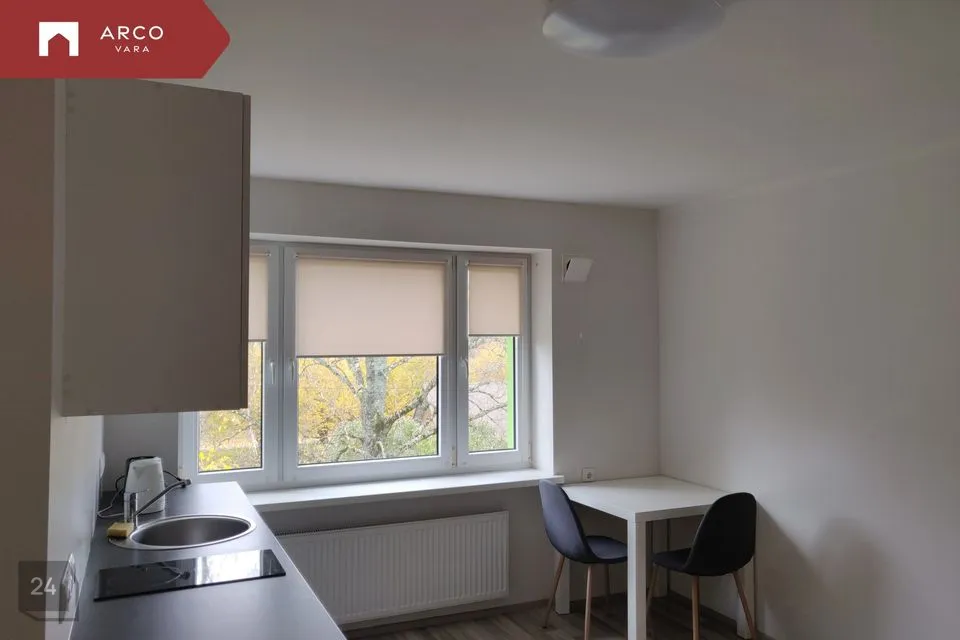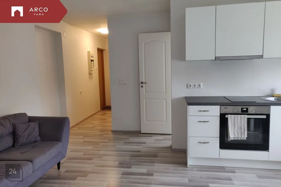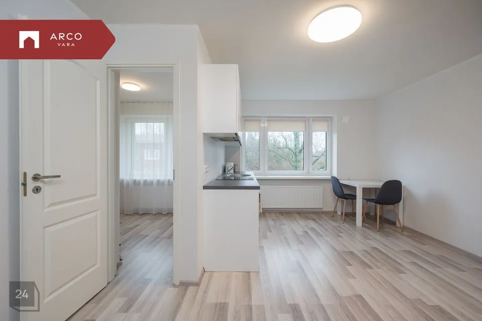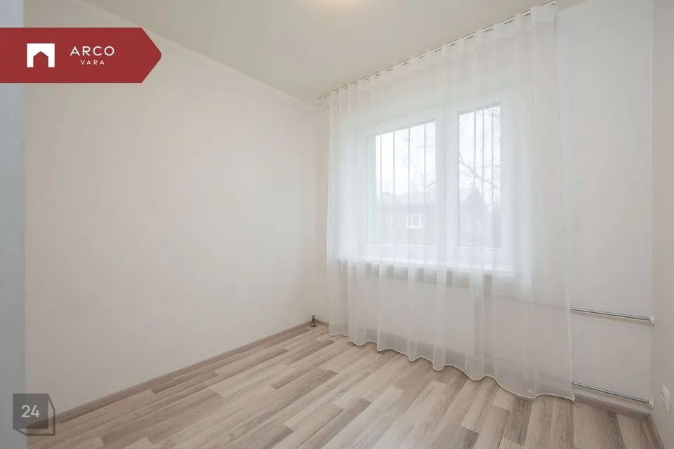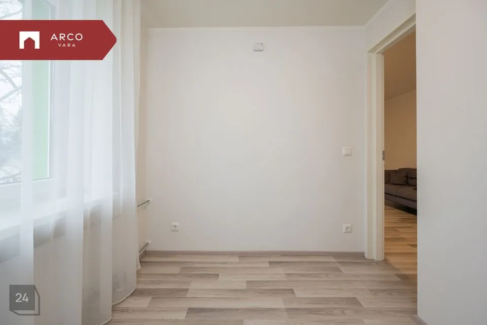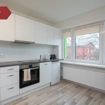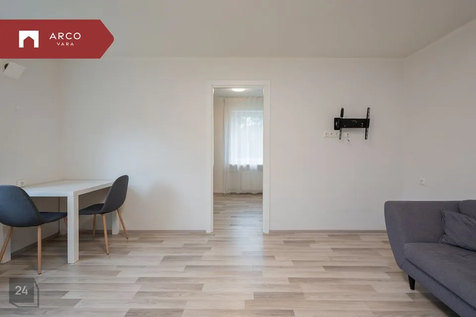 A 3-room renovated, well-maintained, light-filled apartment is available for rent, located on the third floor of a three-story building. All windows are situated on the back side of the building. Layout - hallway, living room-kitchen, WC-shower room, and 2 bedrooms.
