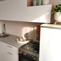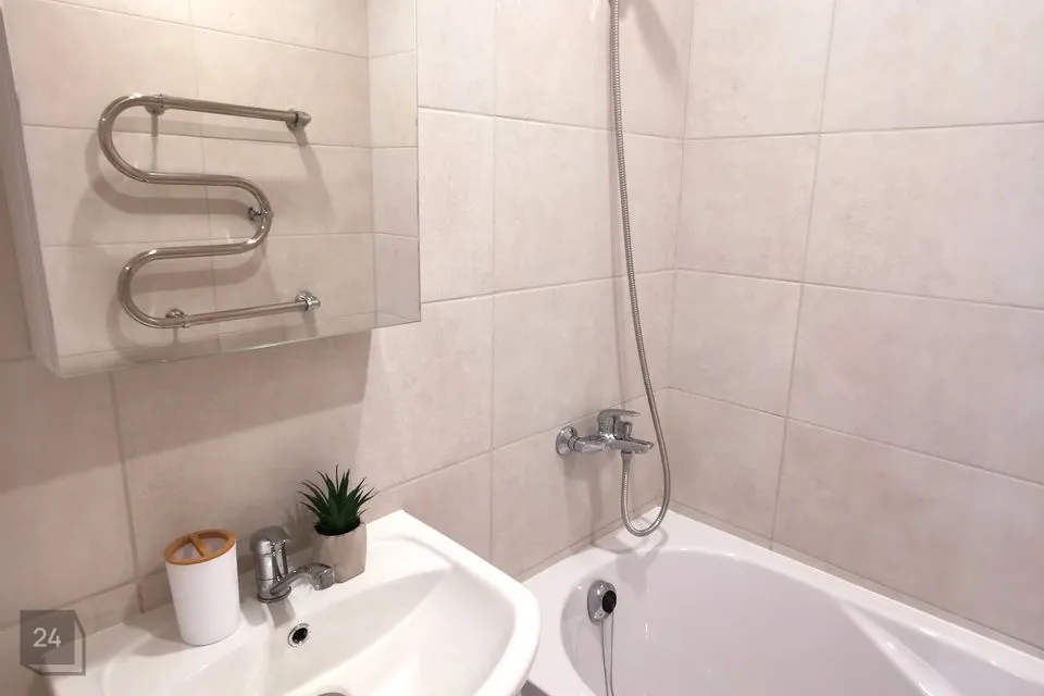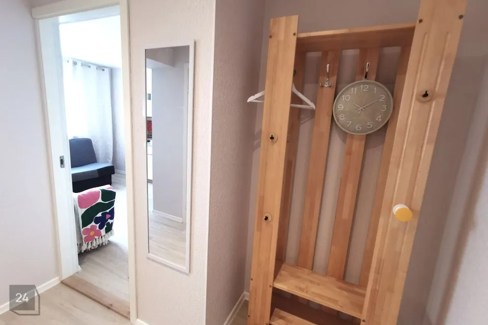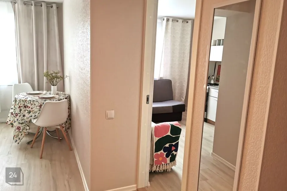 Korteris on olemas kõik eluks vajalik mööbel ja tehnika ning võimalus kohe sisse kolida. Elutoas on mugav diivan, mis käib lahti kahekohaliseks voodiks, diivanilaud, kummut ja televiisor.