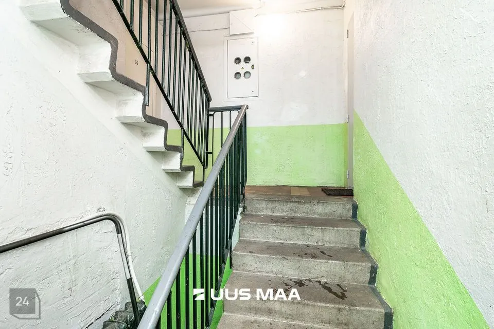Korter asub kõrgel esimesel korrusel. Maja asetus lubab elutoa ja köögi poolelt täielikku privaatsust, sest hoone vastas maju ei asu ja eemalt terendavab vaid rohenäppude lemmikud - aiamaad.