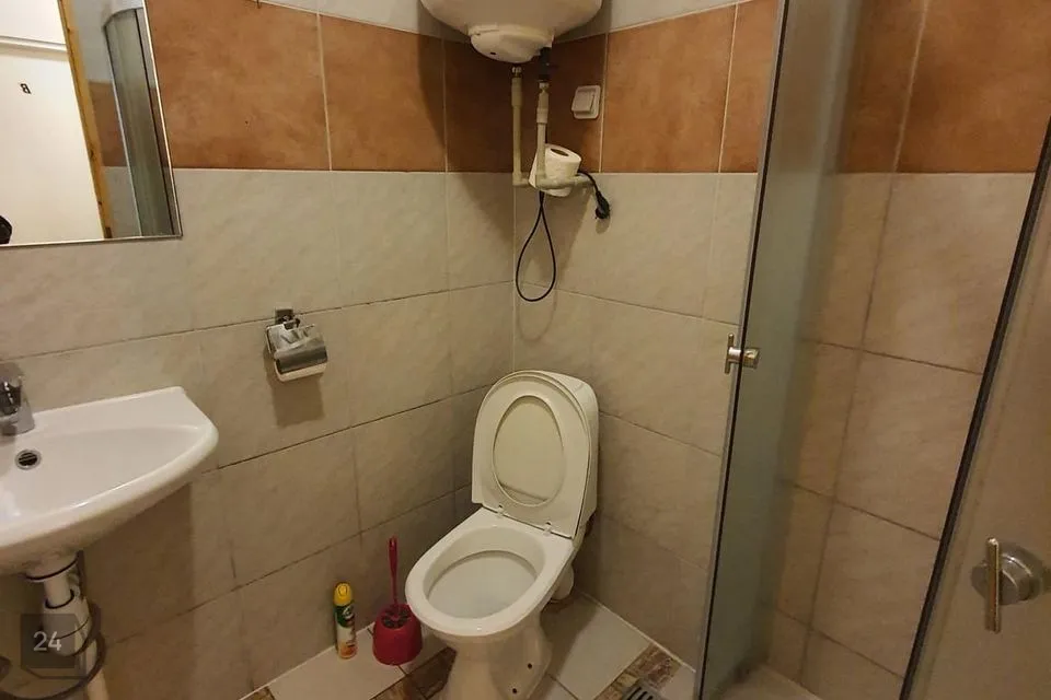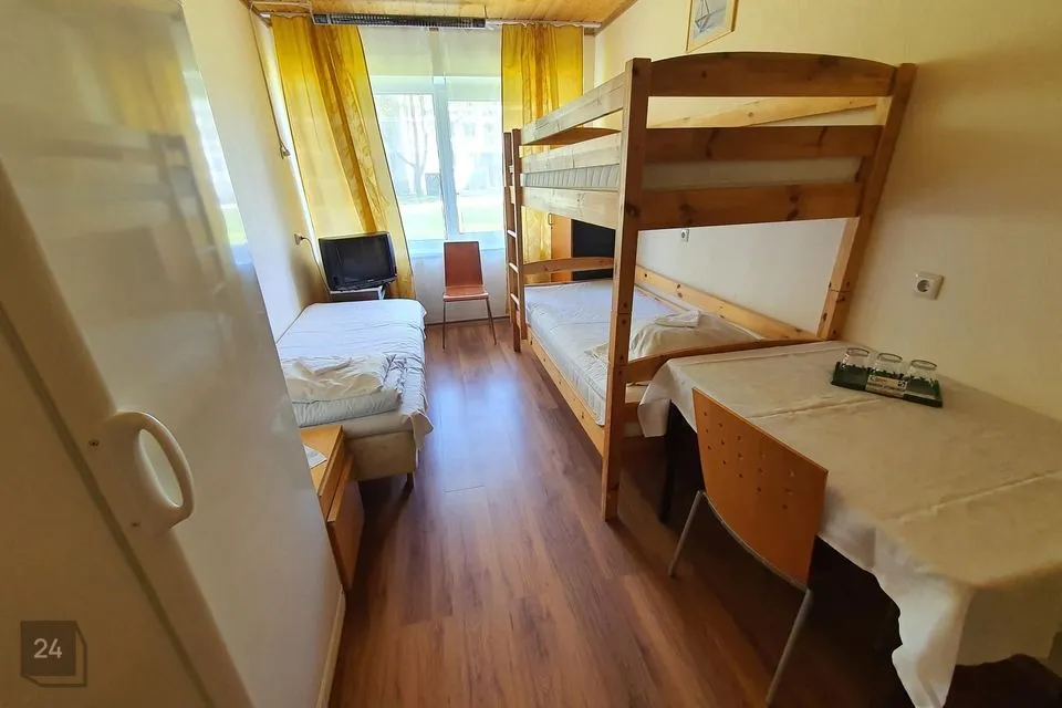In the room: furniture, refrigerator, TV. WC and shower room is private and shared between 2 neighbouring rooms.