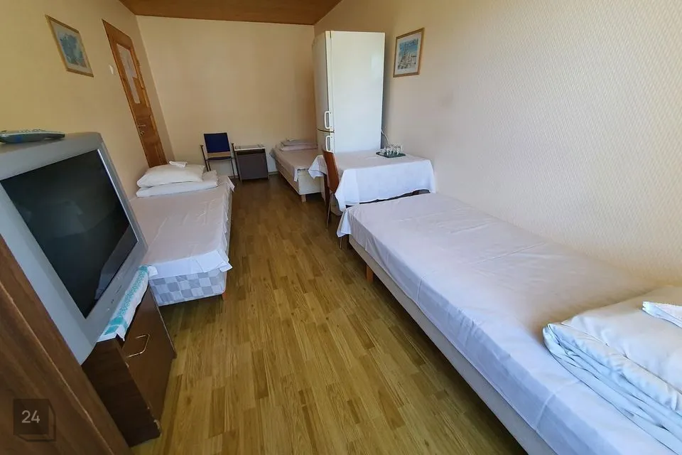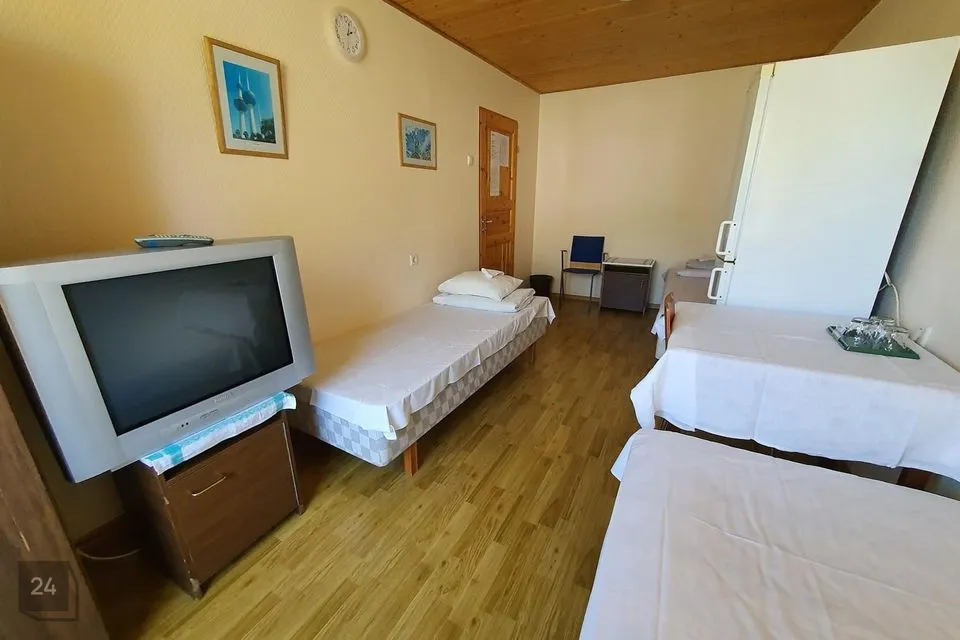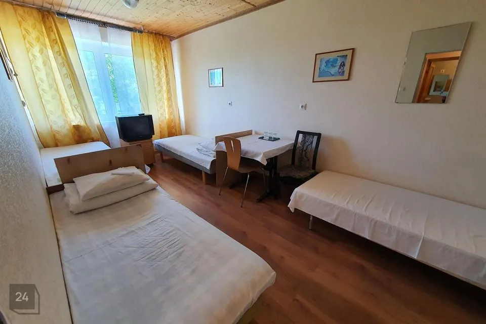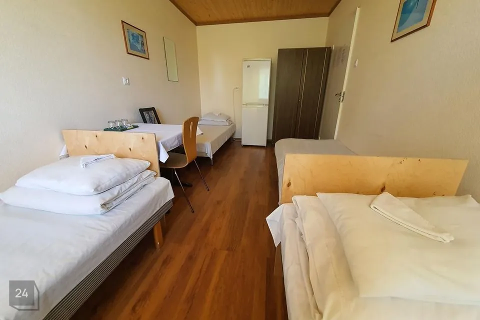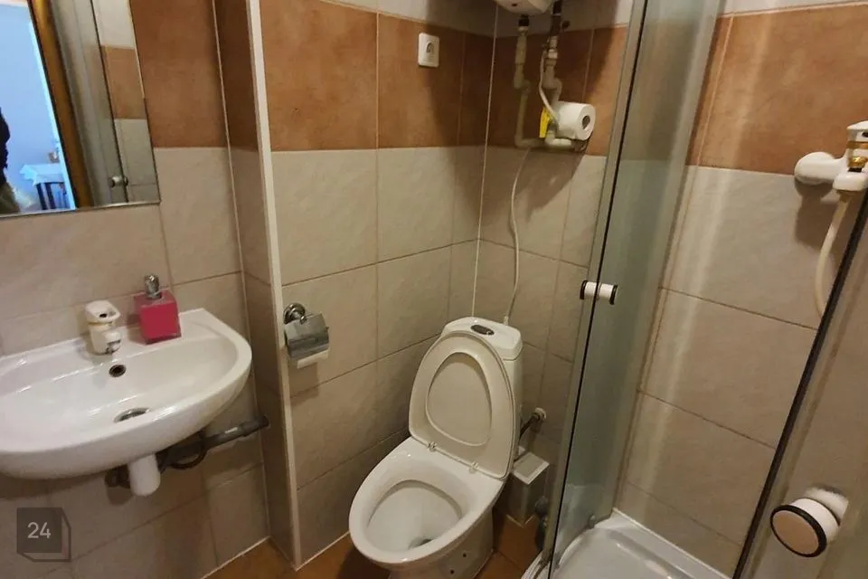 In the room: furniture, refrigerator, TV, bed linen, hand towels. Wc and shower room is private and shared between 2 neighbour rooms.