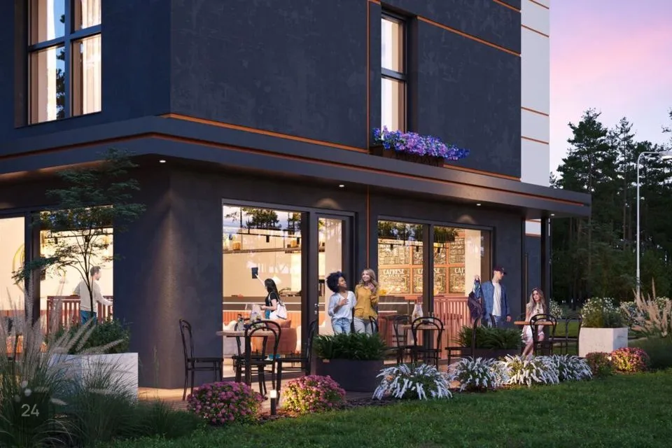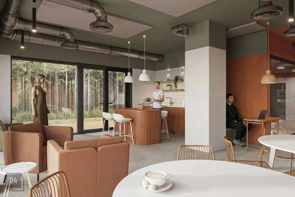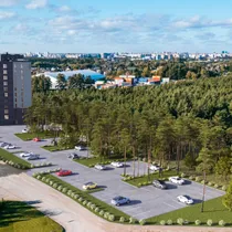 LIVING ENVIRONMENT No Need to Go Far to Enjoy Nature. The Charms of Nature Are Available Right at Home. A Pine Forest Grows in the Courtyard, Which Can Be Enjoyed by Walking or Viewing from the Viieaia Tower's Roof Terrace, Offering an Unparalleled View of the Sunset, Coastline, and Tallinn TV Tower.