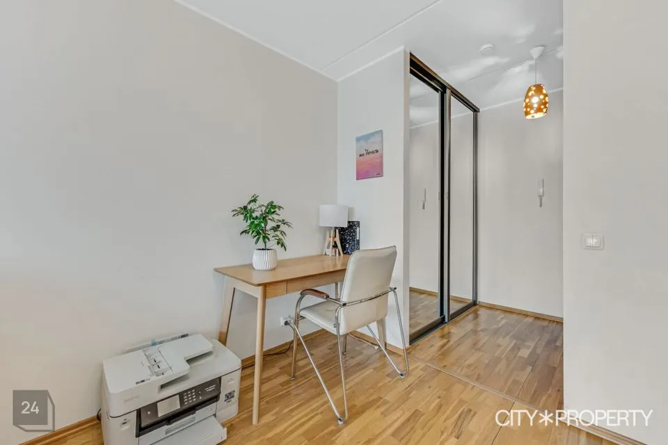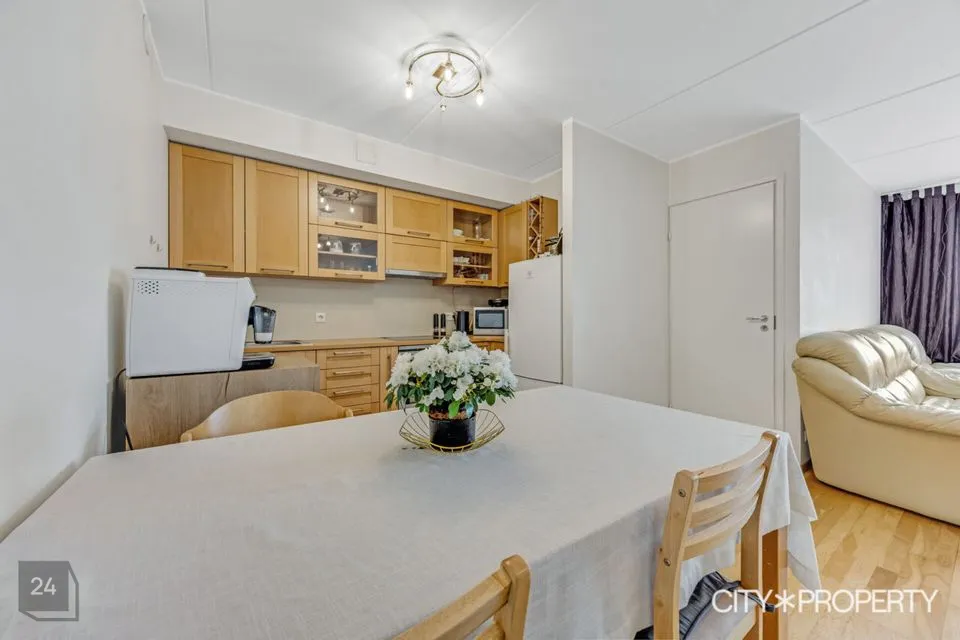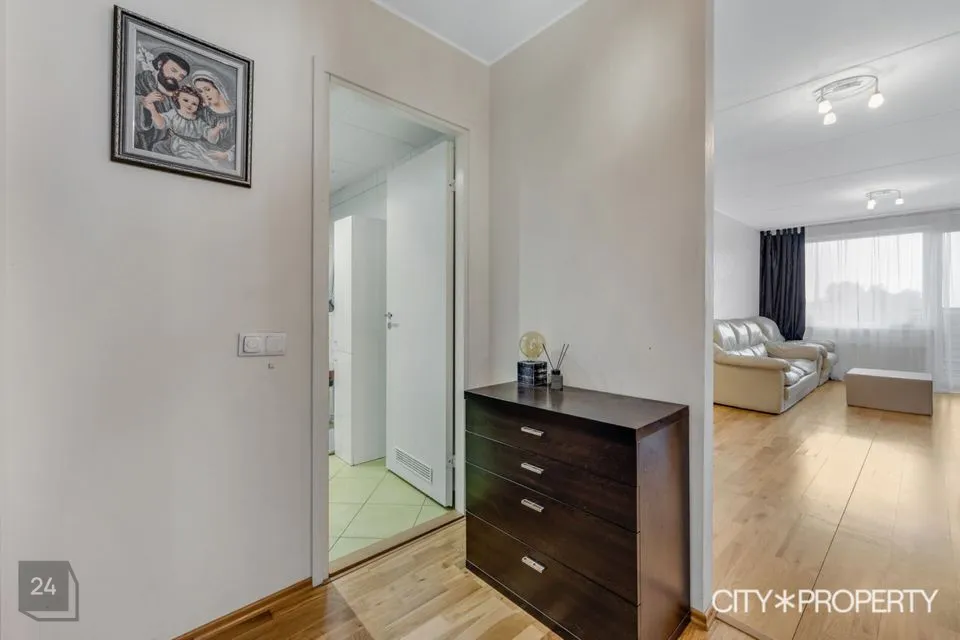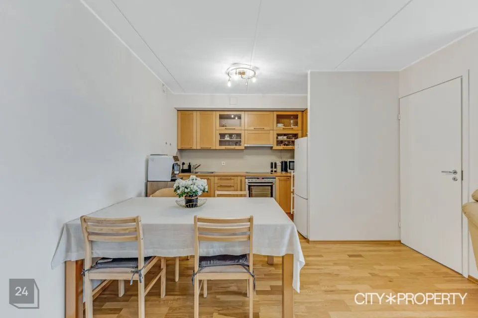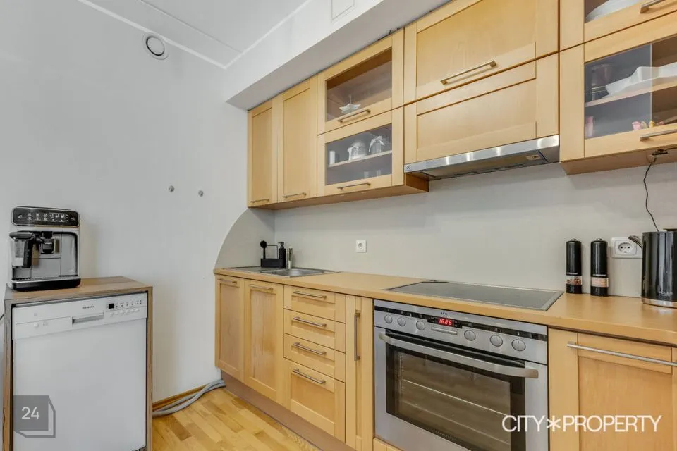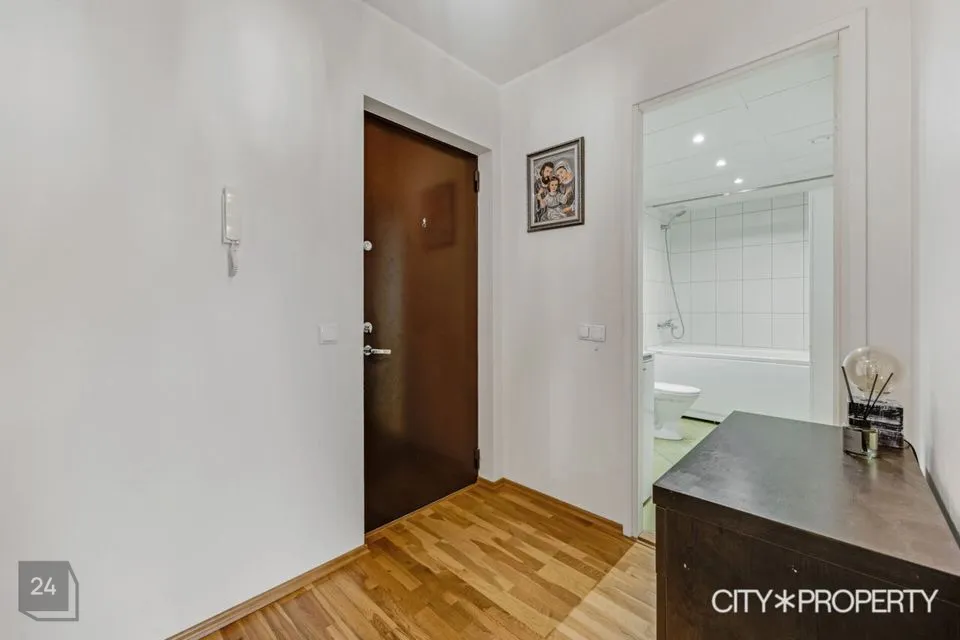 Korteri seinad värvitud heledates toonides. Põrandat katab naturaalneparkett. Korteri vaated jäävad hoovi poole, lõuna suunda. Koridoris on sisseehitatud peegelustega garderoobikapp mis mahutab palju vajalikku. Koridoris sisseehitatud garderoobikapp, mis mahutab samuti palju vajalikku. Köögimööbel koos tehnikaga (keraamilineelektripliit, elektriahiahi, kubu, nõudepesumasin ja külmkapp)