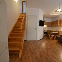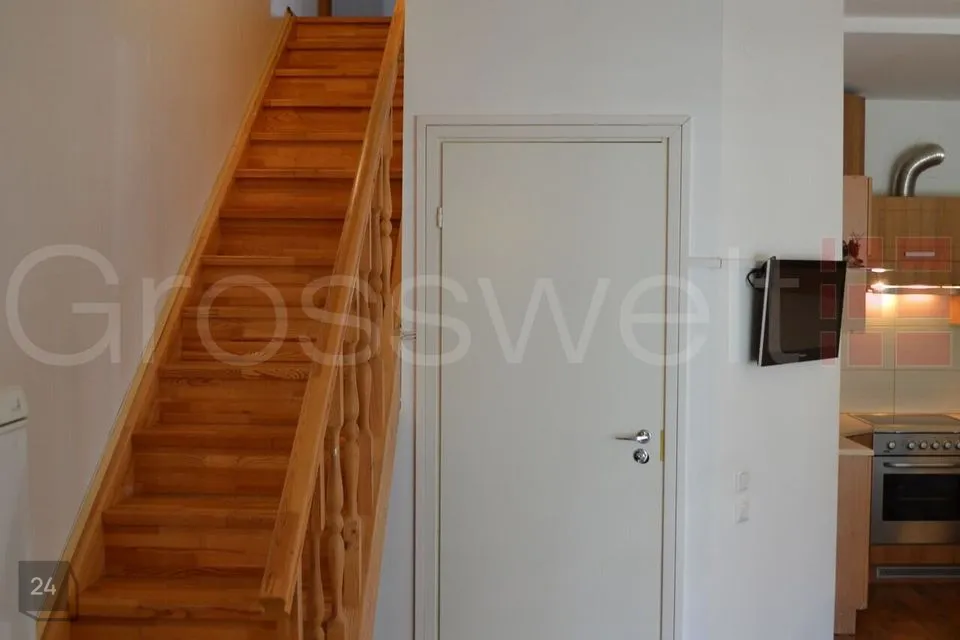 Korter on kahetasandiline. Esimesel korrusel asub esik, elutuba avatud köögiga, WC-vannituba koos saunaga, terrass ning teisel korrusel asub suur magamistuba rõduga.