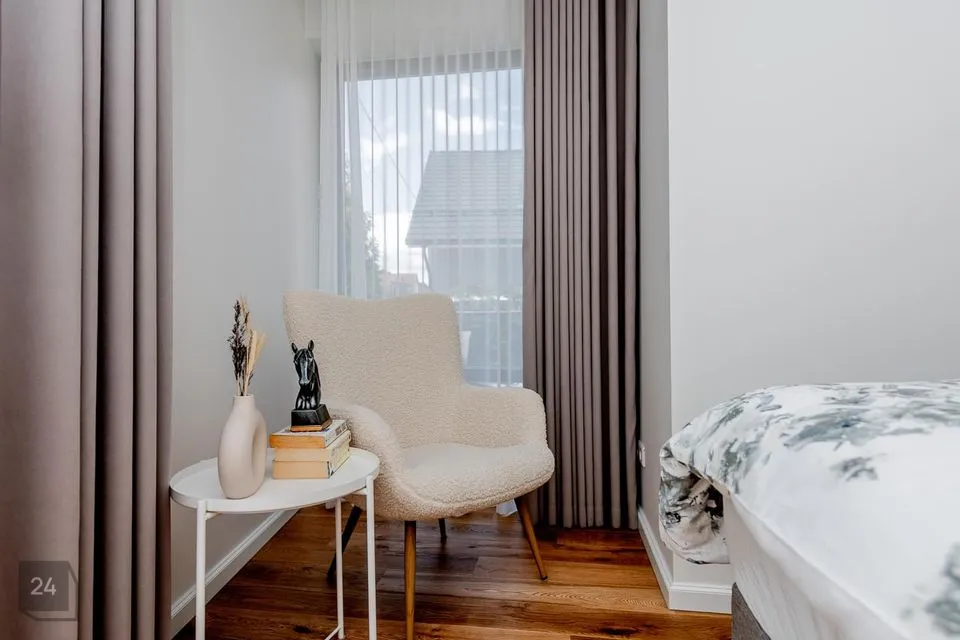 Hubaselt sisustatud 3-toaline korter, kus maast laeni aknad loovad mõnusalt avara tunde ja tagavad loomuliku päevavalguse terve päeva jooksul. Sügis-talvisel perioodil loob meeleolu elutoas asuv kamin.