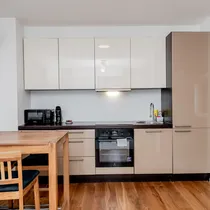 Köögis on olemas köögimööbel, elektripliit, külmik , õhupuhasti ja nõudepesumasin.