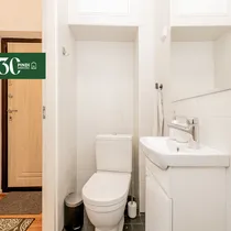 WC ja vannituba koos, soe vesi boilerist.