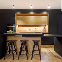 Sisustus on disainmööbli ja tõeliselt hea maitse parim näide. Igal asjal on oma koht, valitud valgustus ja oskuslik paigutus. Köögimööblil on olemas isegi pikendatav lauaosa, et saaksite seal ka seltskonnaga mõnusalt aega veeta.