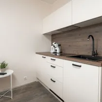 Korter on kaasaegne ja heas korras ning sisaldab kõike eluks vajalikku. Olemas on pliit, külmik ja muu vajalik köögisisustus.