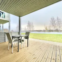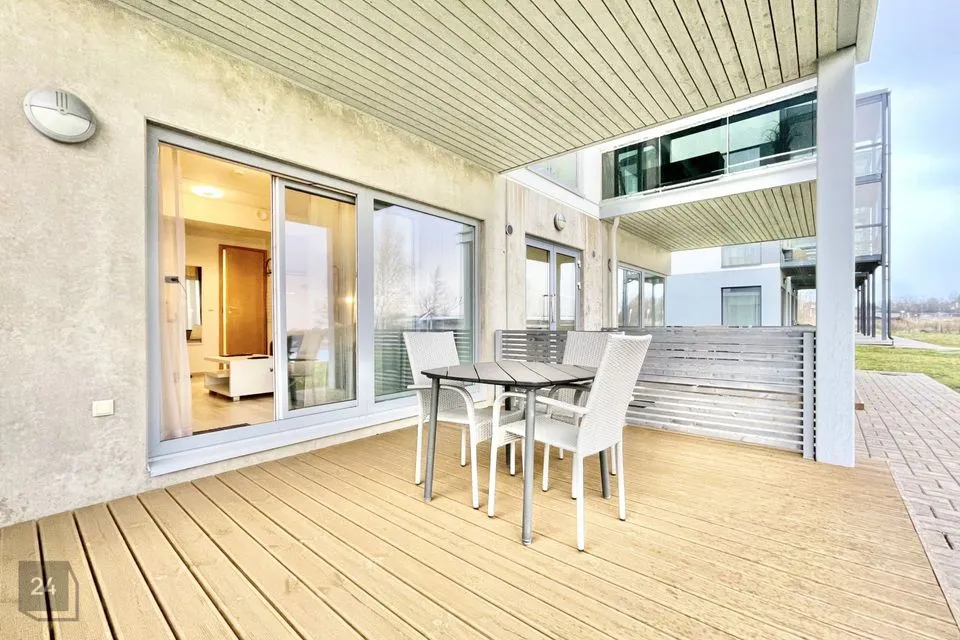 sissepääsu korrus 0/2, funktsionaalne 1-toaline, üldpind 22.30 m² + jõevaatega terrass 14.10 m²