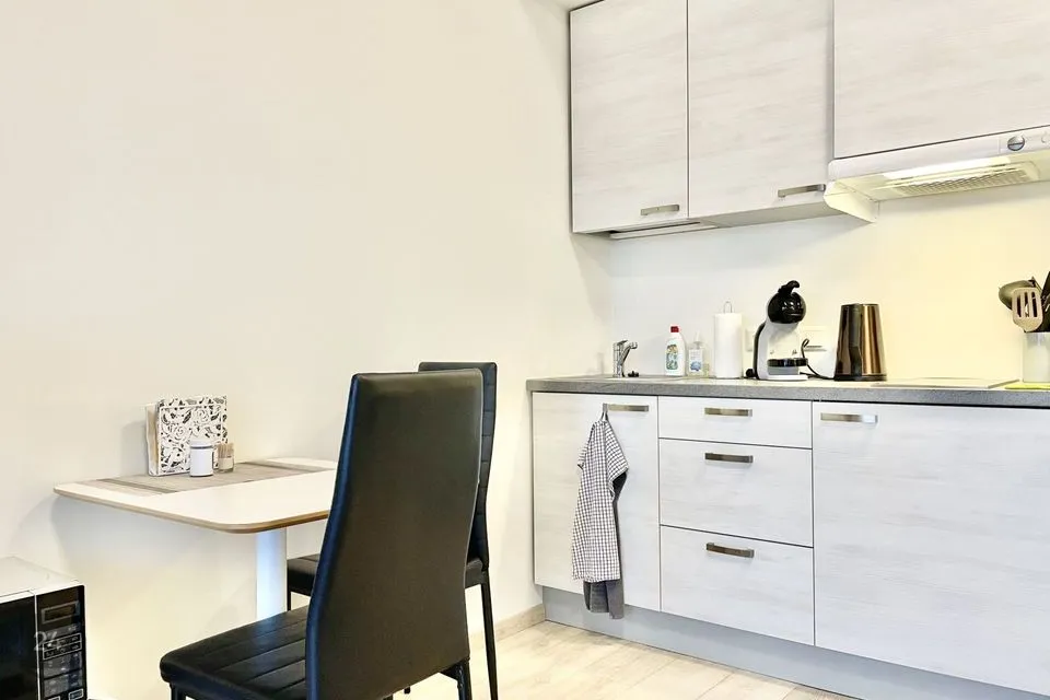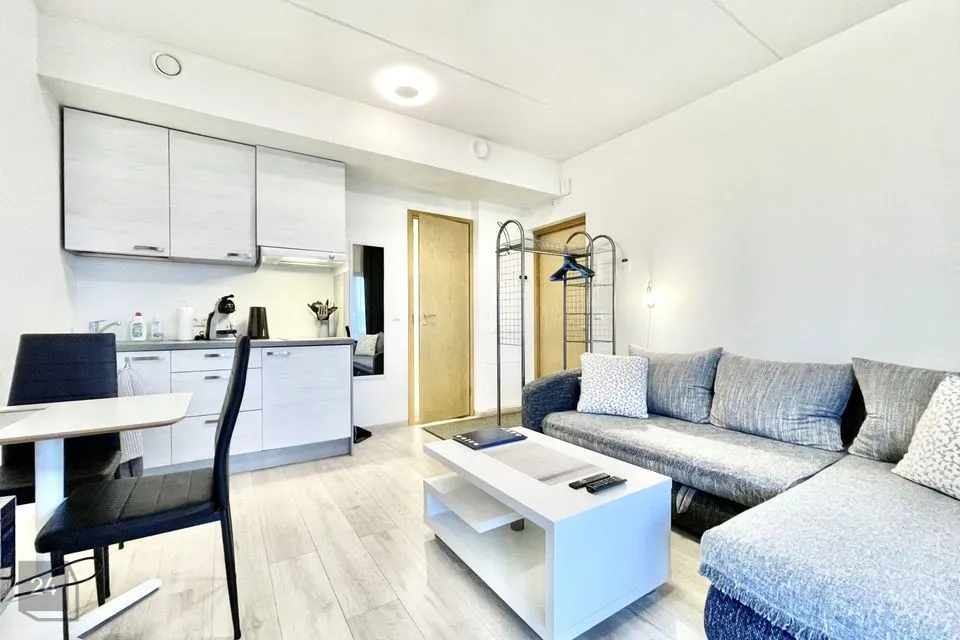 funktsionaalse ja valgusküllase, 1-toalise stuudiokorteri koosseisu kuuluvad esik, avatud elutuba-köök, tualett-duširuum, leiliruum, avar jõepoolne terrass