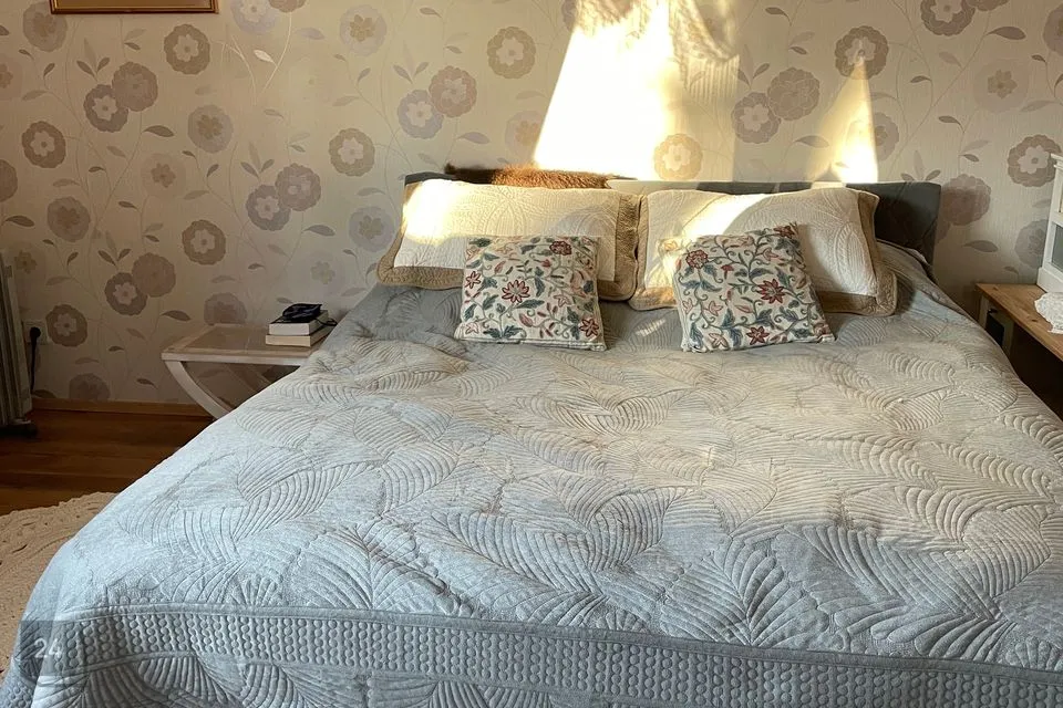 Magamistoas: suur karderoobikapp, kummut, lai voodi.