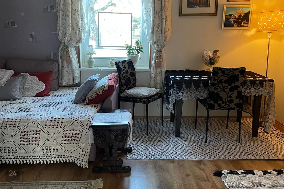 Väike 4 korteriga elamu, esimene korrus, eraldi sissepääs ja oma kinnise hoovialaga. Korteris on elutuba-köök, eraldi magamistuba, esik ja WC koos duziruumiga. Kütteks õhksoojuspump, põrandaküte.