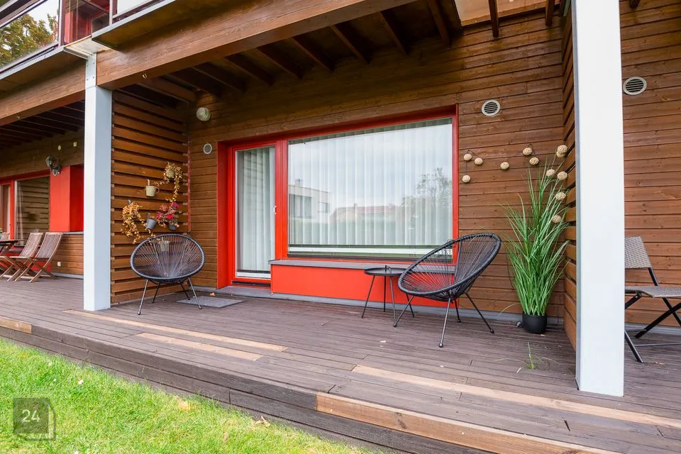 Korteril on enda parkimiskoht ja terrass. Korterisse paistab päevane päike.