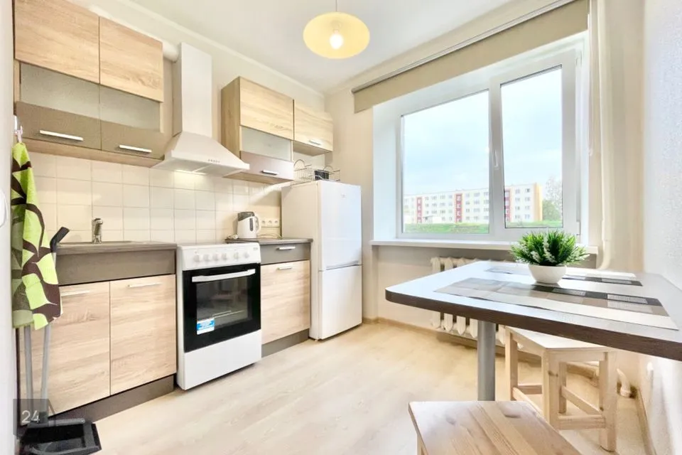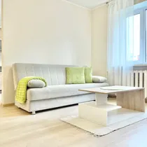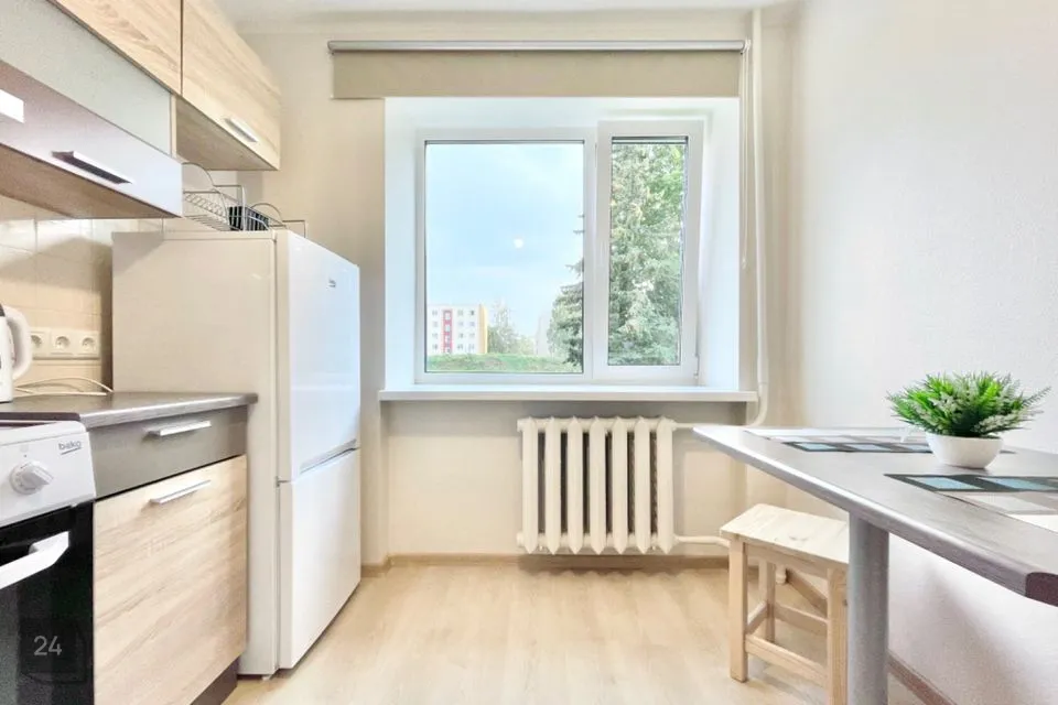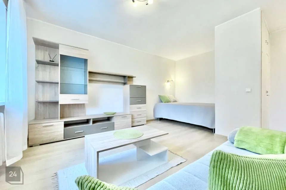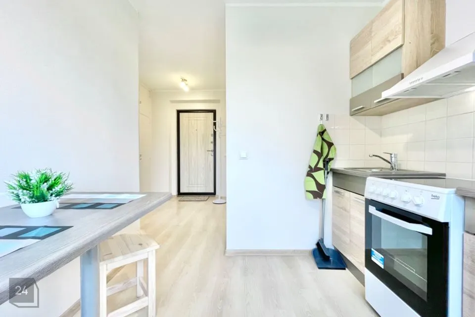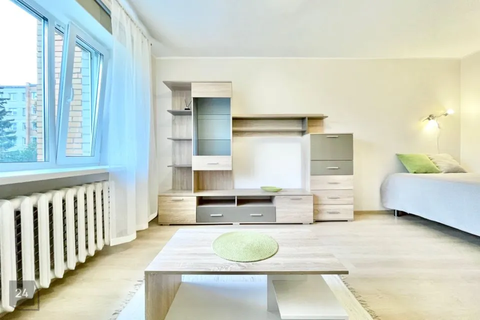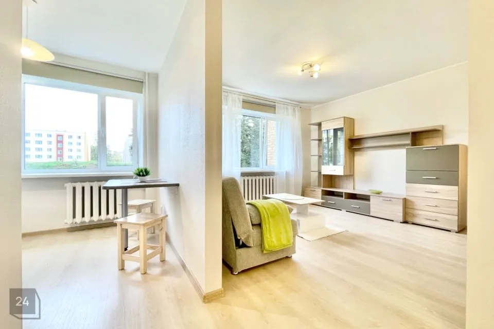 avatud ja valguseküllase planeeringuga korteri koosseisu kuuluvad esik, köök, elutuba-magamistuba, tualett-duširuum