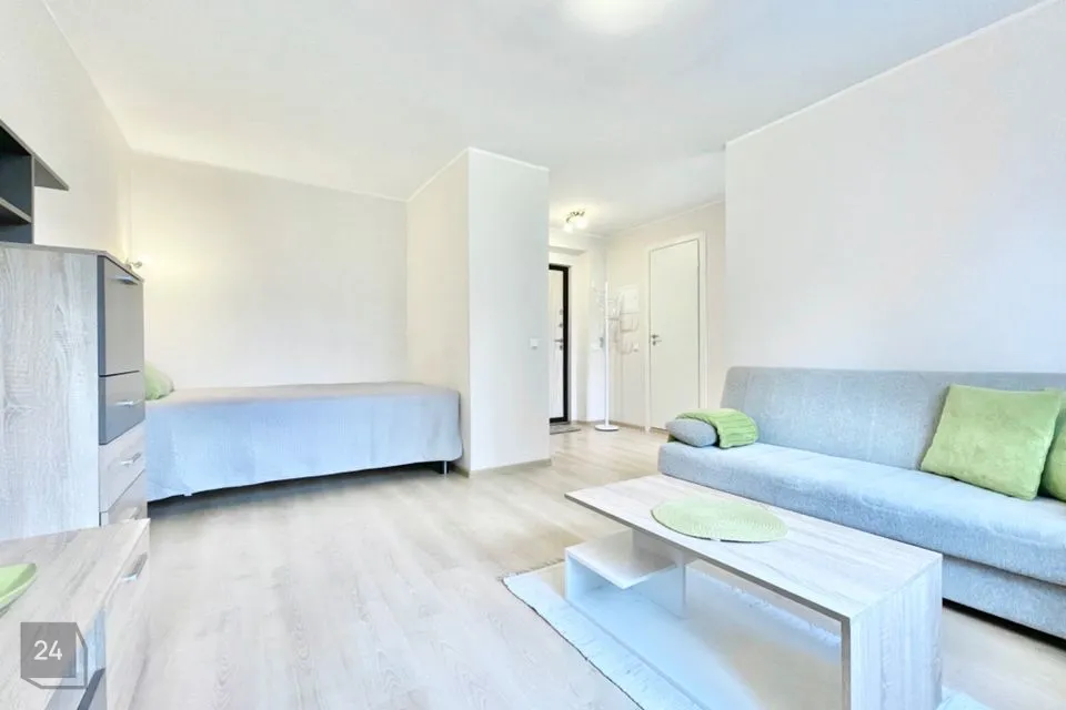 mereäärses Mai elurajoonis, Mai tn 5 korterelamus, pargi vaatega 1/5 korrusel, üüritakse välja, põhjalikult renoveeritud, avatud planeeringuga ja valguseküllane 1-toaline korter, millele loovad lisandväärtuse merevaade, tasuta parkimine, märkimisväärselt soodsad igakuised kõrvalkulud ja suurepärane asukoht