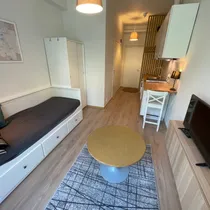 Välja üürida renoveeritud 1-toaline terrassiga täielikult möbleeritud stuudiokorter.