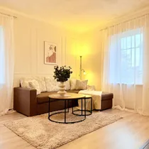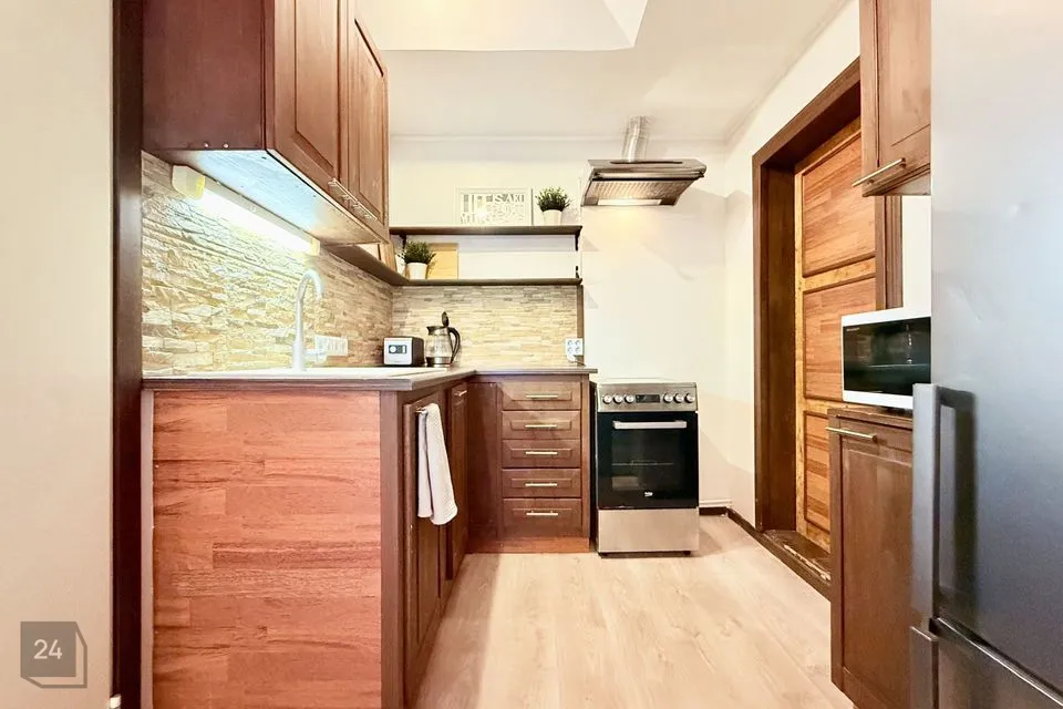 väiksemas korterelamus, 1/2 korrusel, kombineeritud küttevõimalusega, renoveeritud ja möbleeritud 2-toaline korter, millele loovad lisandväärtuse korteri juurde kuuluv kindel kuuriboks, tasuta autoparkimiskoht aiaga piirneval õuealal ja madalad igakuised ülalpidamiskulud