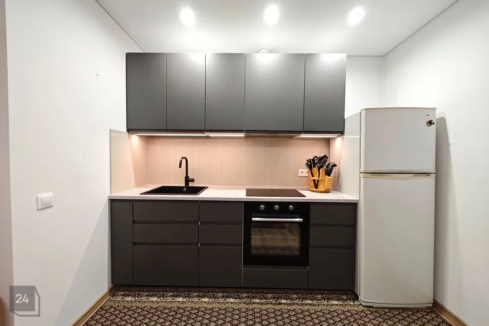 Kaasaegne kööginurk: külmkapp, integreeritud ahi ja pliidiplaat
