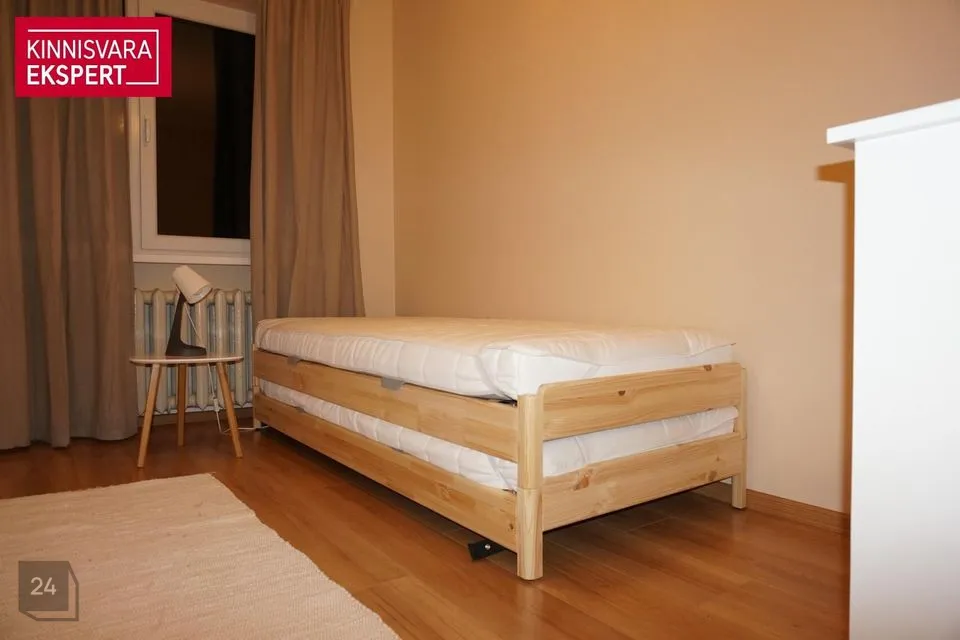 Korter on läbinud põhjaliku remondi ja on väga heas korras. Eluruumid on sisustatud uue inventariga. Magamistoad eraldi, avatud köök-elutuba. Toalisuse poolest sobilik kuni 4liikmelisele perele. Lasteatoas voodi 2 madratsiga.