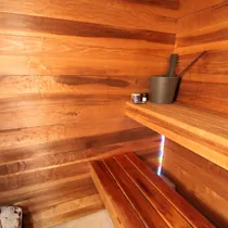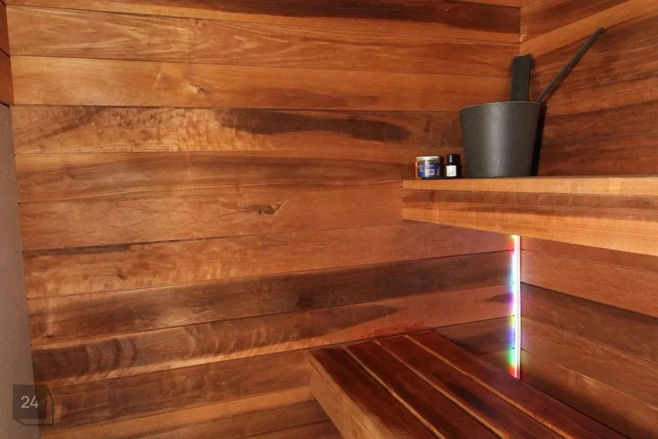 Koridori ning kööki on paigaldatud LED, millel saab vahetada ka toone nii puldist kui ka telefonist. Lisaks on LED valgustus saunas, mis on kuuma- ja niiskuskindel. Magamistoas on valgustil on võimalik muuta valguse värvi. Puldiga saab valgustit ka kaugemalt sisse või välja lülitada.Elutoas ja koridoris on võimalik valgustil vahetada tooni. Põrandakatteks tubades on laminaat ning koridoris ja köögis on PVC. Duširuumis ning saunas on põrand plaaditud. Tubades on seinakatteks tapeet, koridoris on MDF seinapaneel, köögis on seinad värvitud. Saunavooder ja saunalava on tehtud termopuidust, laes on kadakapaneelid.