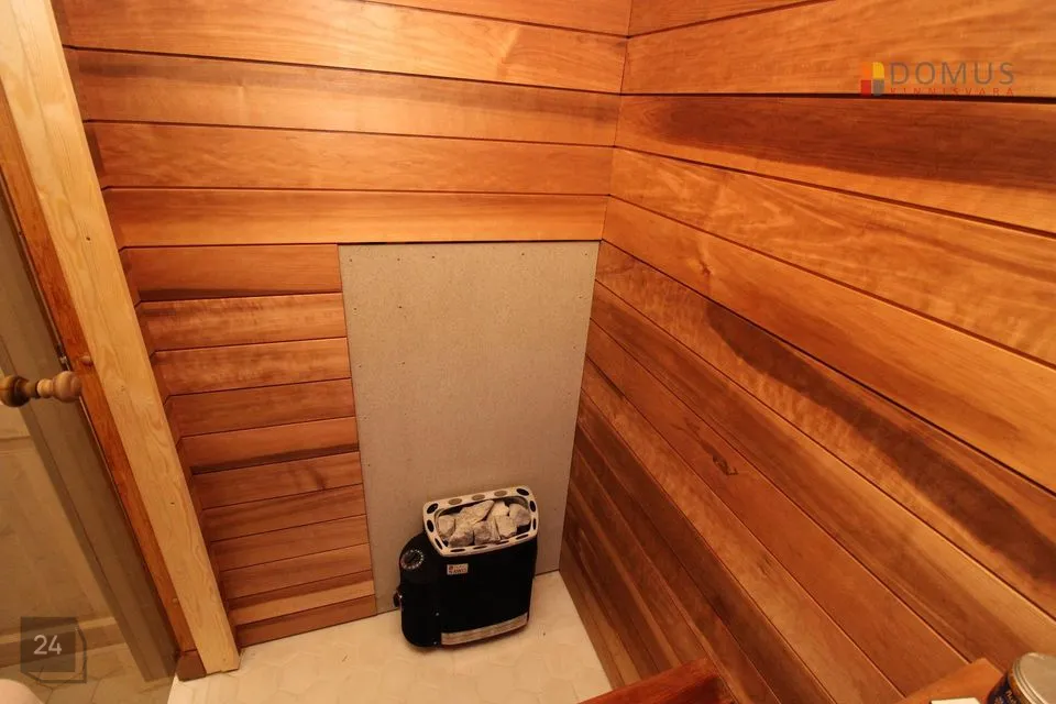 Keskküte. Lisaks on saunas ning duširuumis elektripõrandaküte, mis on registris. Saunas on Sawo sametpinnaga elektrikeris, mis on 3.6 kW. Sametpinnaga elektrikeris muudab sauna kasutamist samuti turvalisemaks- kui inimene peaks kokku puutuma kerise tulise pinnaga, siis samet vähendab põletuse ohtu. Saun on registris.