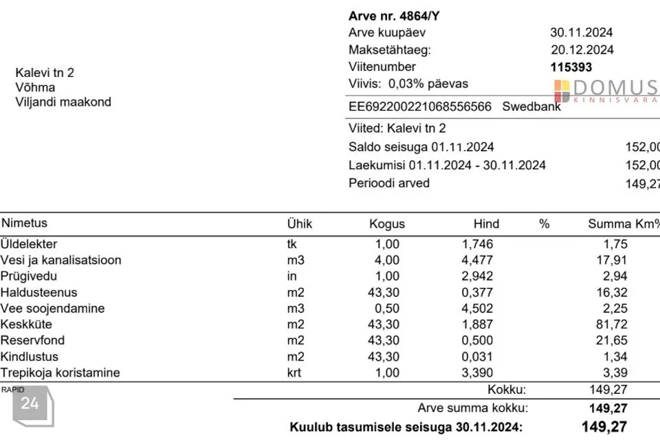Üürilepingu sõlmimisel tuleb tasuda ühe kuu üürisumma ette 299 eurot ning lepingutasu 299 eurot.