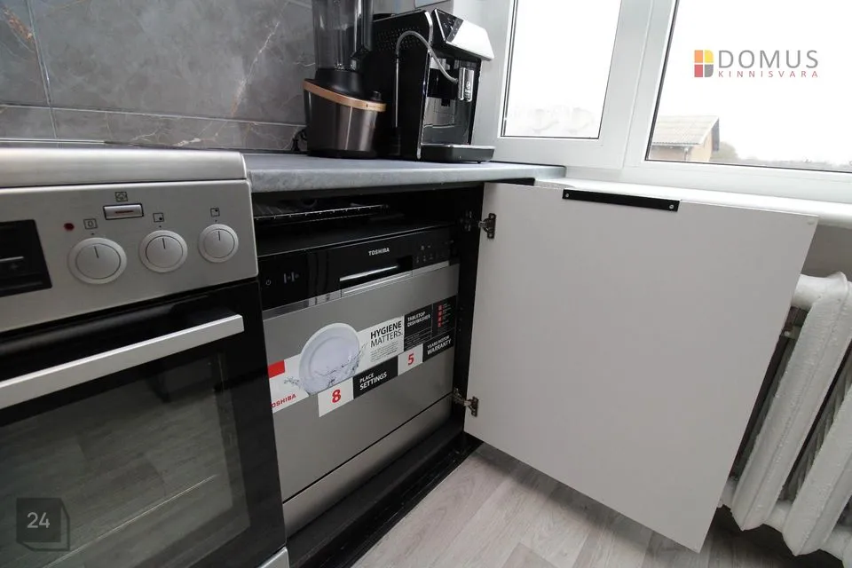 Mööbel: köögimööbel, klapplaud, duširuumis olev mööbel, kapp, kirjutuslaud,diivanvoodi, telerialune kapp, laud, 2 tooli, riidenagi, kummut, riidekapp, riiul, öökapp, voodi 140 x200.