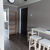 Korterisse sisenedes paikne avatud esik-köök-elutuba. Esiku osas on olemas koht riidekapi paigaldamiseks.