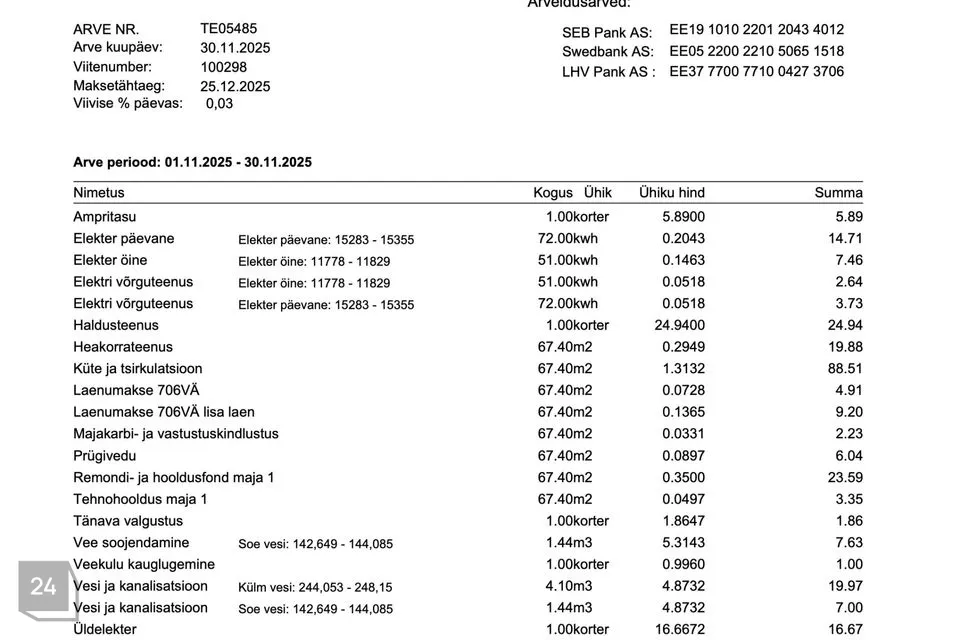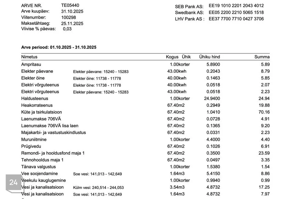 Maja kütmiseks on autonoomne gaasikatel. Korteris on vesipõrandaküte. Mõned arved on näha fotode lõpus.