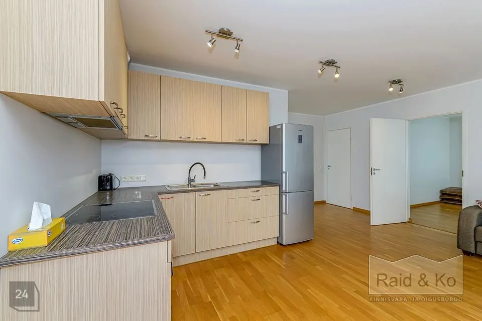 Korteri koosseisu kuuluvad: suur elutuba koos avatud köögiga (köögis on olemas ka nõudepesumasin ning põhilised köögitarvikud), kaks magamistuba. Vannituba -WC on aknaga (olemas pesumasin-kuivati). Korteril on suur rõdu kuhu pääseb nii ühest magamistoast kui ka elutoast.