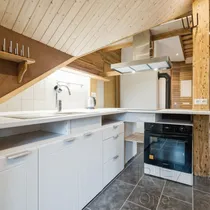 Köögis on suur külmik, mahukad köögikapid ja induktsioonpliit. Töötasapinda kokkamiseks jagub ka suuremale kokandushuvilisele.