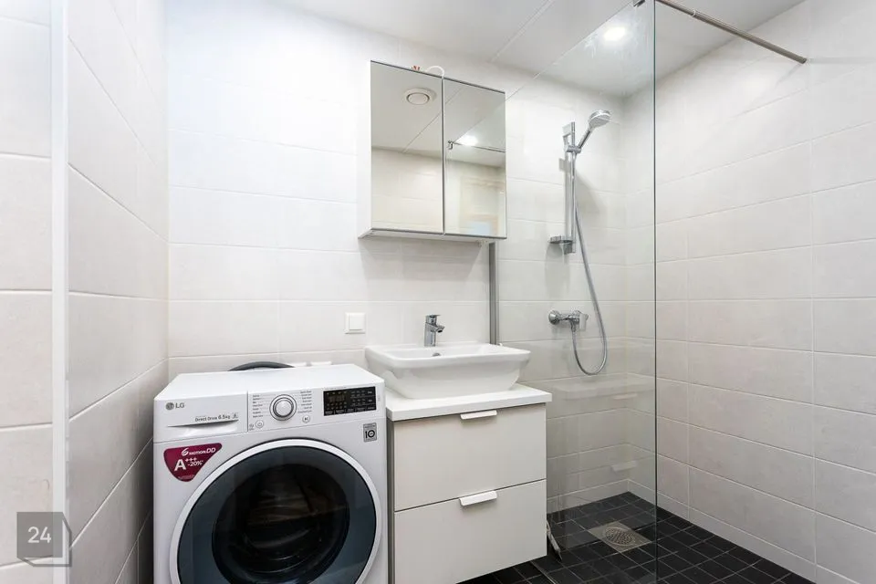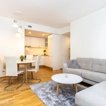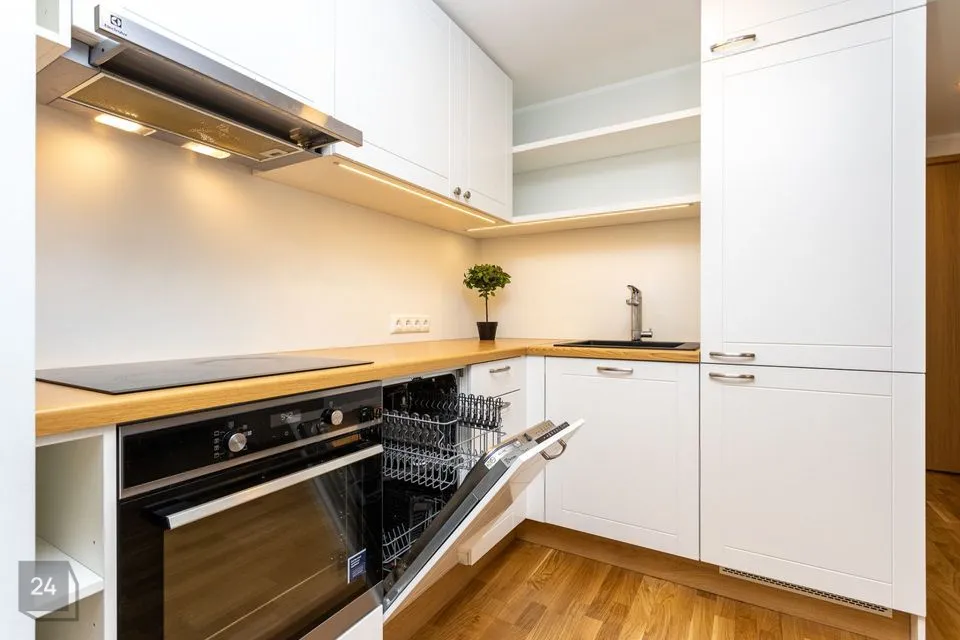 Sisustuses on kasutatud heledaid toone, mistõttu on korter avar. Korter on maitsekalt sisustatud ja olemasolev mööbel jääb üürniku kasutada. Köögis on olemas nõudepesumasin ning korteris on ka pesumasin.