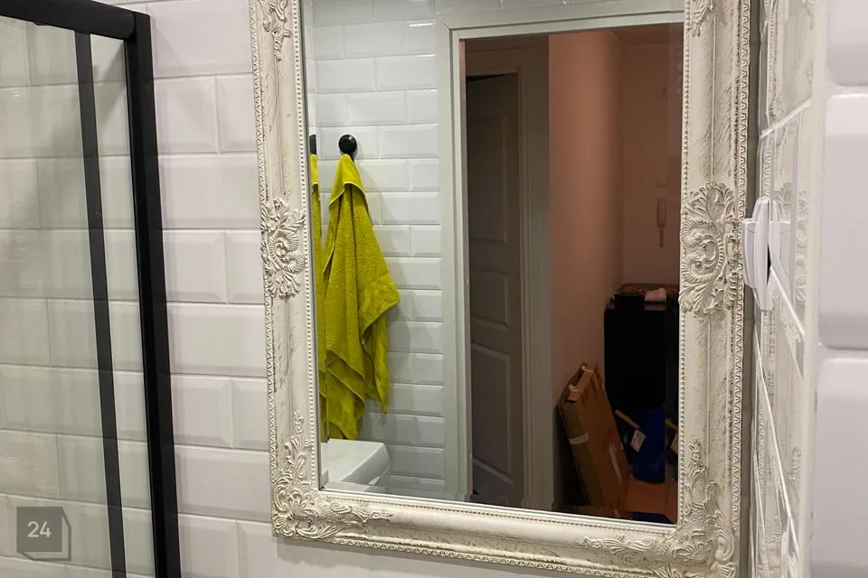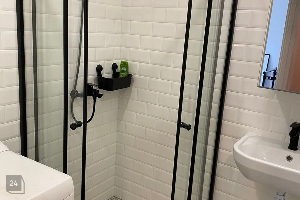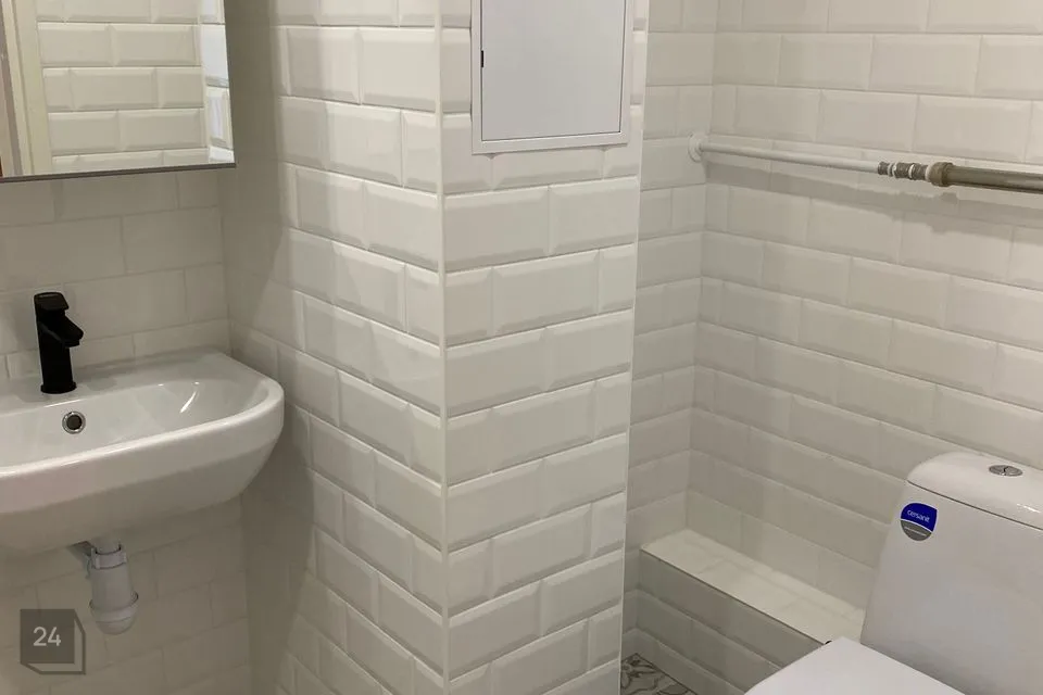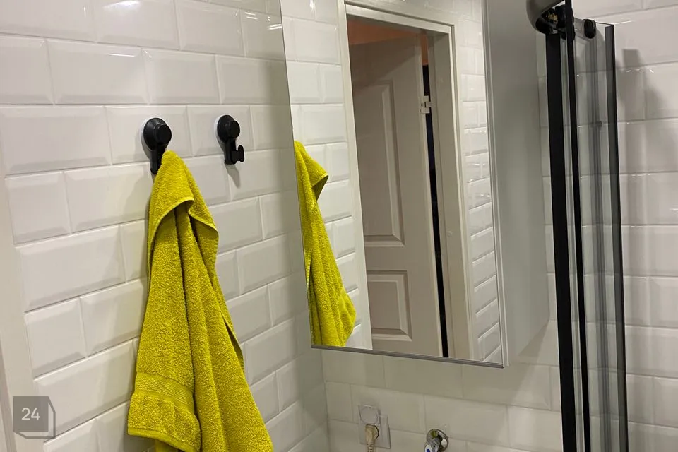 Vannitoas: pesumasin, seinakapp, peegel (kõik mis piltidel).