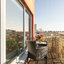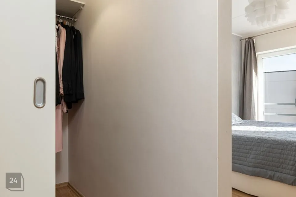 Planeering: Kõik toad paiknevad eraldi. Tänu nurgapealsele planeeringule on walk-in garderoobiga peamagamistuba eriti valgusküllane. Ruumikast maast laeni akendega avatud köök-elutoast pääseb rõdule. Korteris on kaks WC-d, millest üks on vannitoas. Esikust pääs eraldi garderoobi.